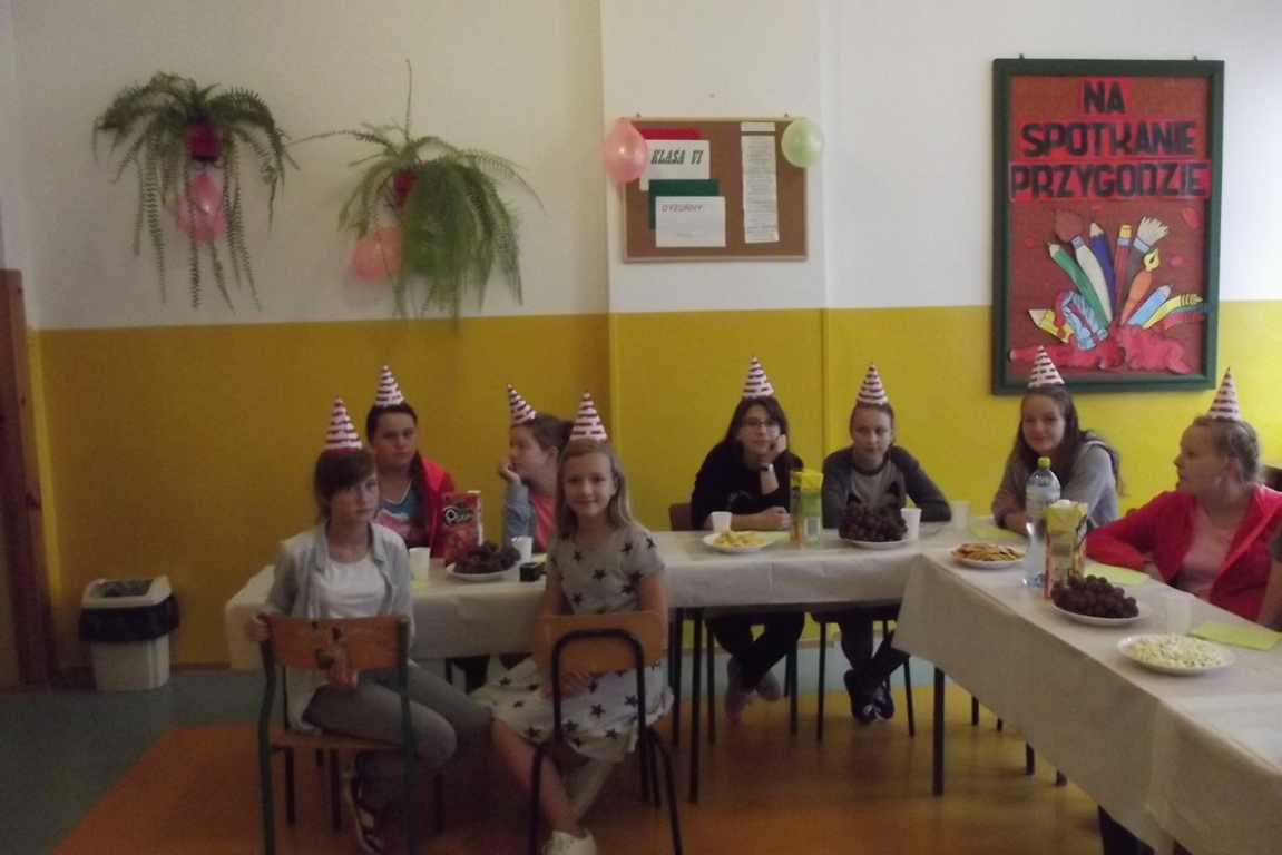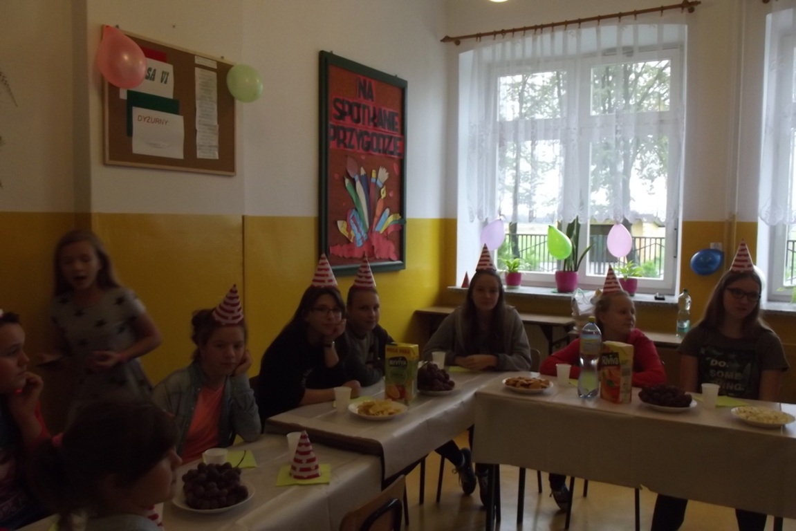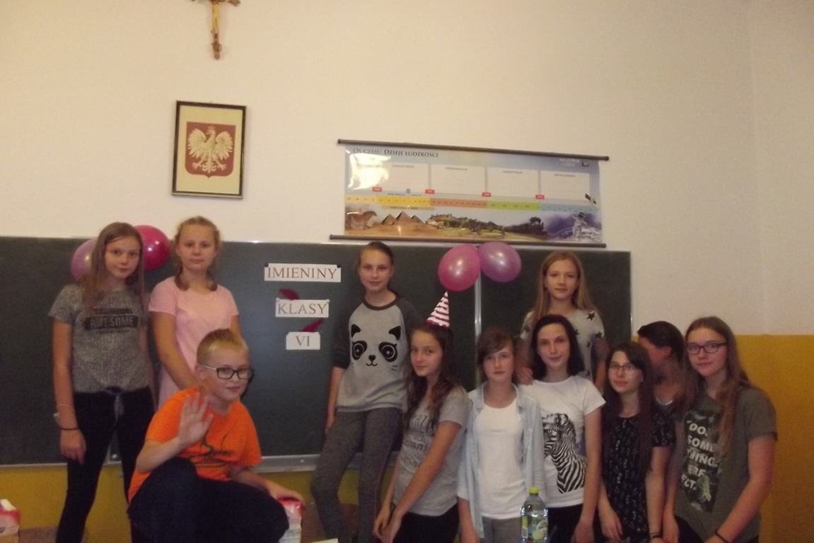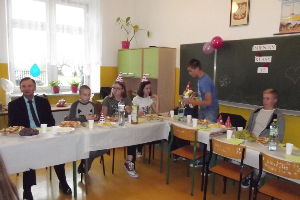 21 września po zakończonych lekcjach uczniowie klasy VI spotkali się na wspólnej zabawie integracyjnej pod hasłem „Imieniny klasy”. Podczas otwarcia imprezy pan dyrektor życzył uczniom wielu sukcesów w rozpoczynającym się roku szkolnym. Uczestnicy z przyjemnością usiedli do wspólnego poczęstunku, o który zatroszczyli się rodzice. Wieczorek upłynął pod znakiem dopisującego humoru i udanej zabawy.