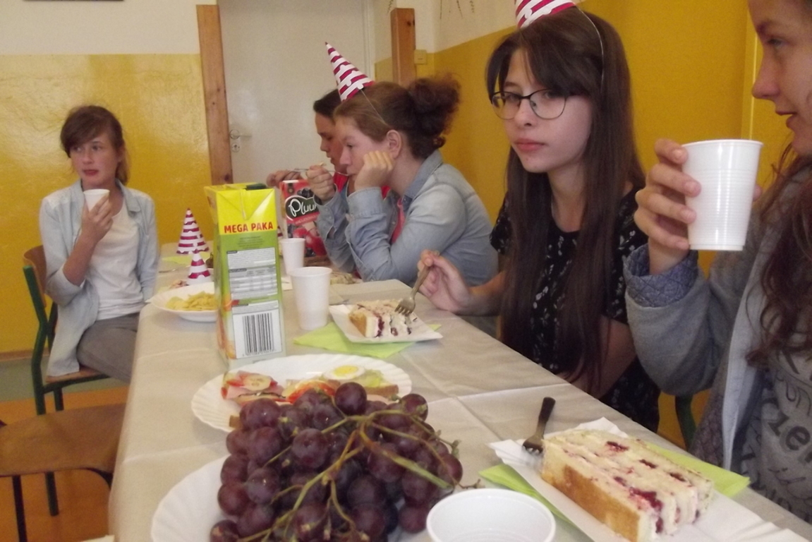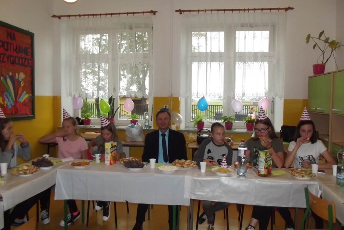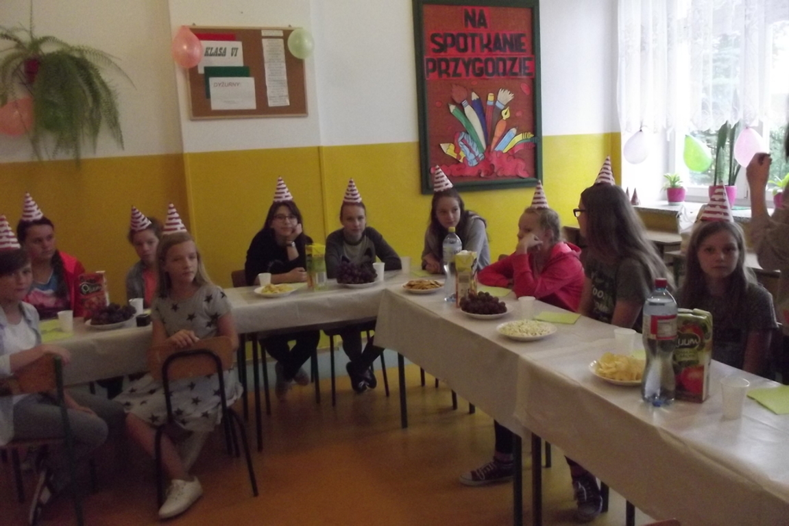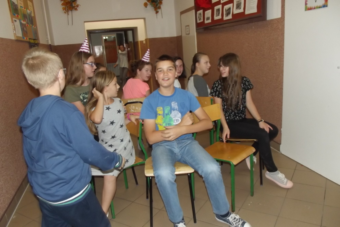 21 września po zakończonych lekcjach uczniowie klasy VI spotkali się na wspólnej zabawie integracyjnej pod hasłem „Imieniny klasy”. Podczas otwarcia imprezy pan dyrektor życzył uczniom wielu sukcesów w rozpoczynającym się roku szkolnym. Uczestnicy z przyjemnością usiedli do wspólnego poczęstunku, o który zatroszczyli się rodzice. Wieczorek upłynął pod znakiem dopisującego humoru i udanej zabawy.