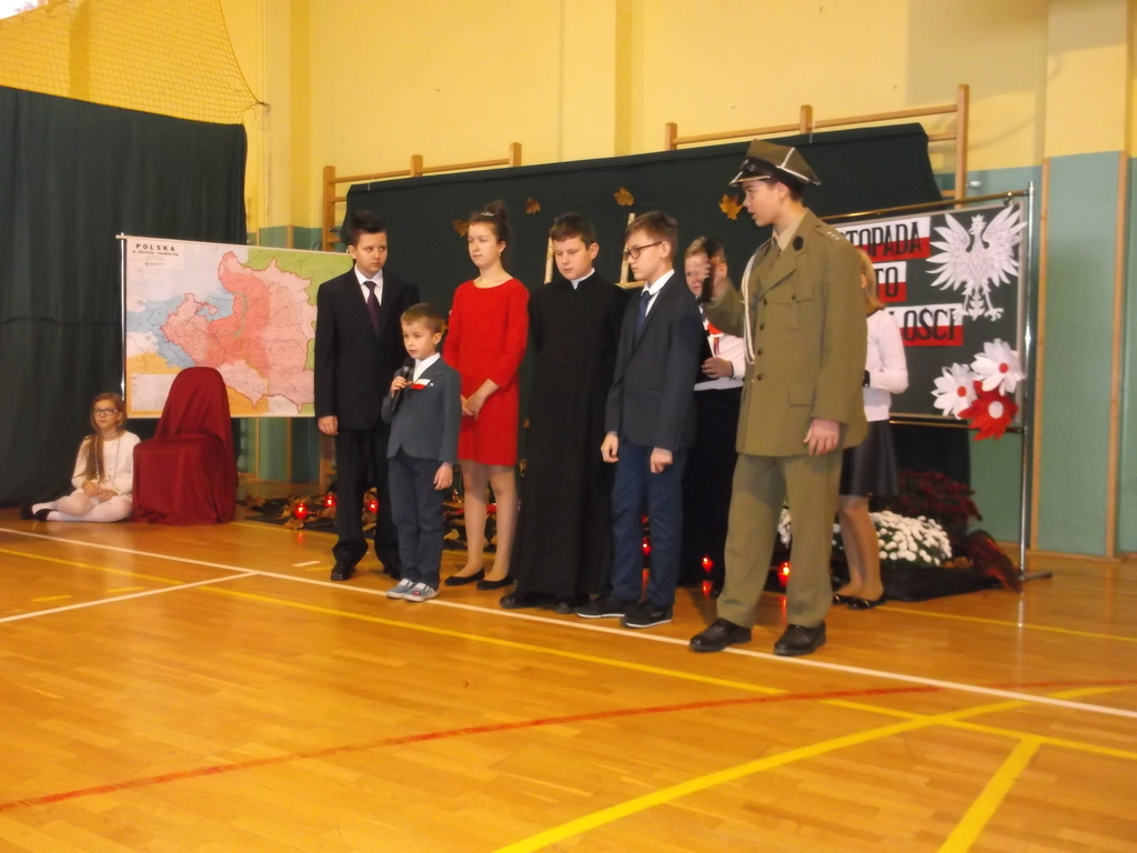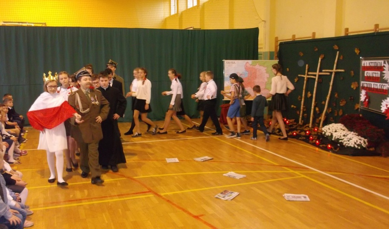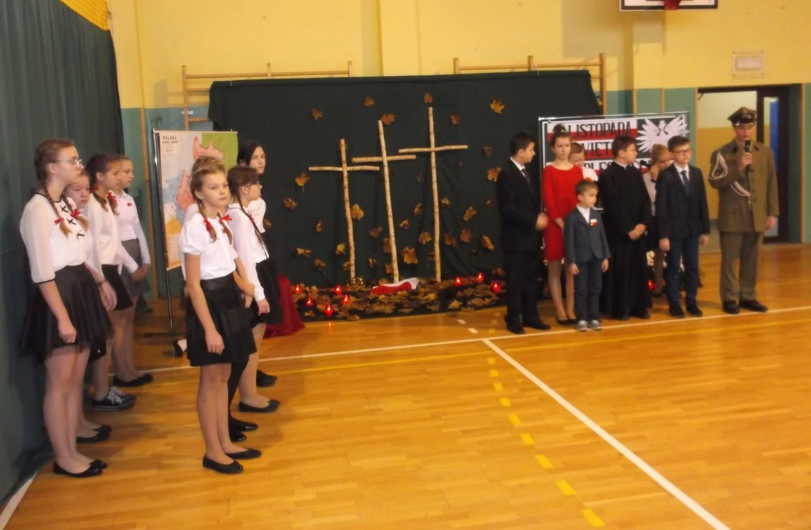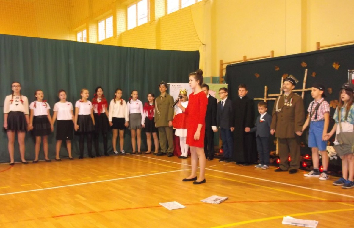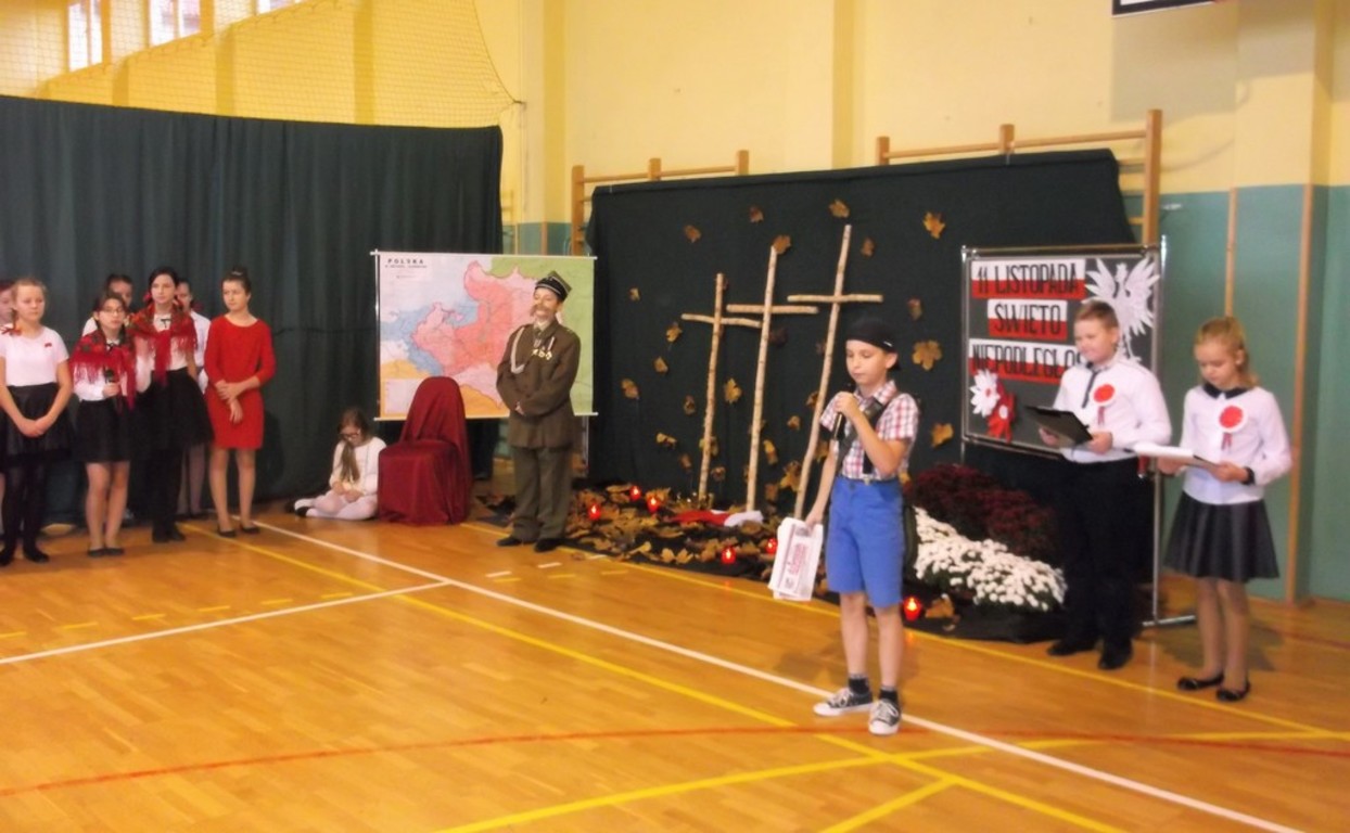 10 listopada 2017 r. w naszej szkole odbyła się uroczysta akademia z okazji 99. rocznicy Odzyskania Niepodległości przez Polskę przygotowana przez uczniów pod kierunkiem p. Aliny Dawidiuk i p. Olgi Sobotyk. Była to swoista lekcja historii, która pozwoliła dzieciom na lepsze zrozumienie zawiłych dziejów naszej Ojczyzny. Po uroczystości szkolnej delegacja uczniów wraz z p. dyrektorem Henrykiem Wyszyńskim złożyła kwiaty pod pomnikiem Józefa Piłsudskiego. Następnie przedstawiciele naszej szkoły udali się na gminne obchody Święta Niepodległości do Szkoły Podstawowej w Motwicy.