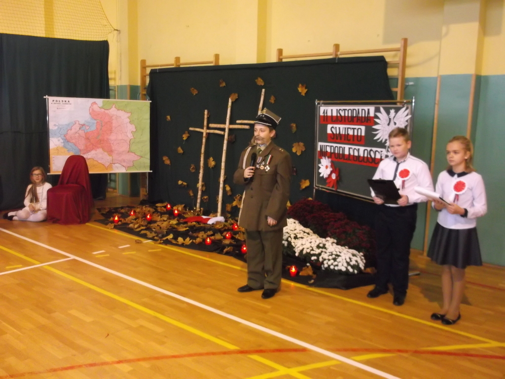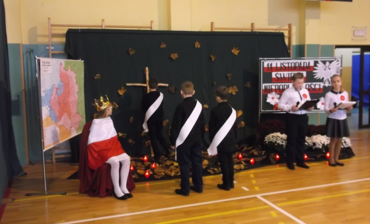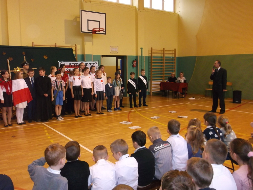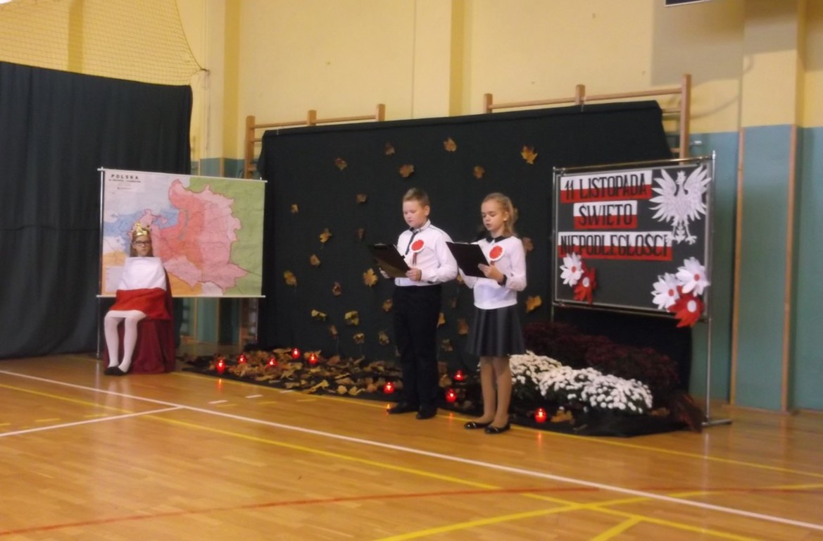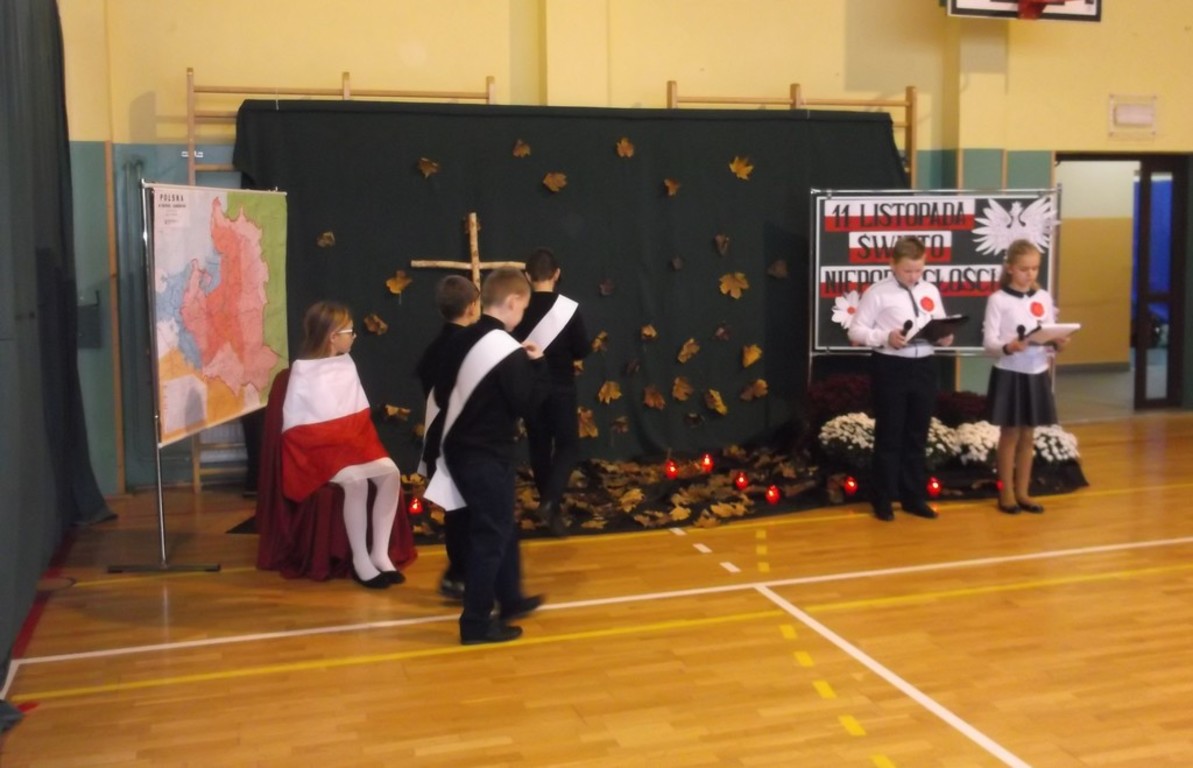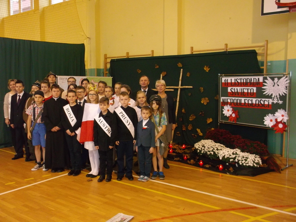 10 listopada 2017 r. w naszej szkole odbyła się uroczysta akademia z okazji 99. rocznicy Odzyskania Niepodległości przez Polskę przygotowana przez uczniów pod kierunkiem p. Aliny Dawidiuk i p. Olgi Sobotyk. Była to swoista lekcja historii, która pozwoliła dzieciom na lepsze zrozumienie zawiłych dziejów naszej Ojczyzny. Po uroczystości szkolnej delegacja uczniów wraz z p. dyrektorem Henrykiem Wyszyńskim złożyła kwiaty pod pomnikiem Józefa Piłsudskiego. Następnie przedstawiciele naszej szkoły udali się na gminne obchody Święta Niepodległości do Szkoły Podstawowej w Motwicy.