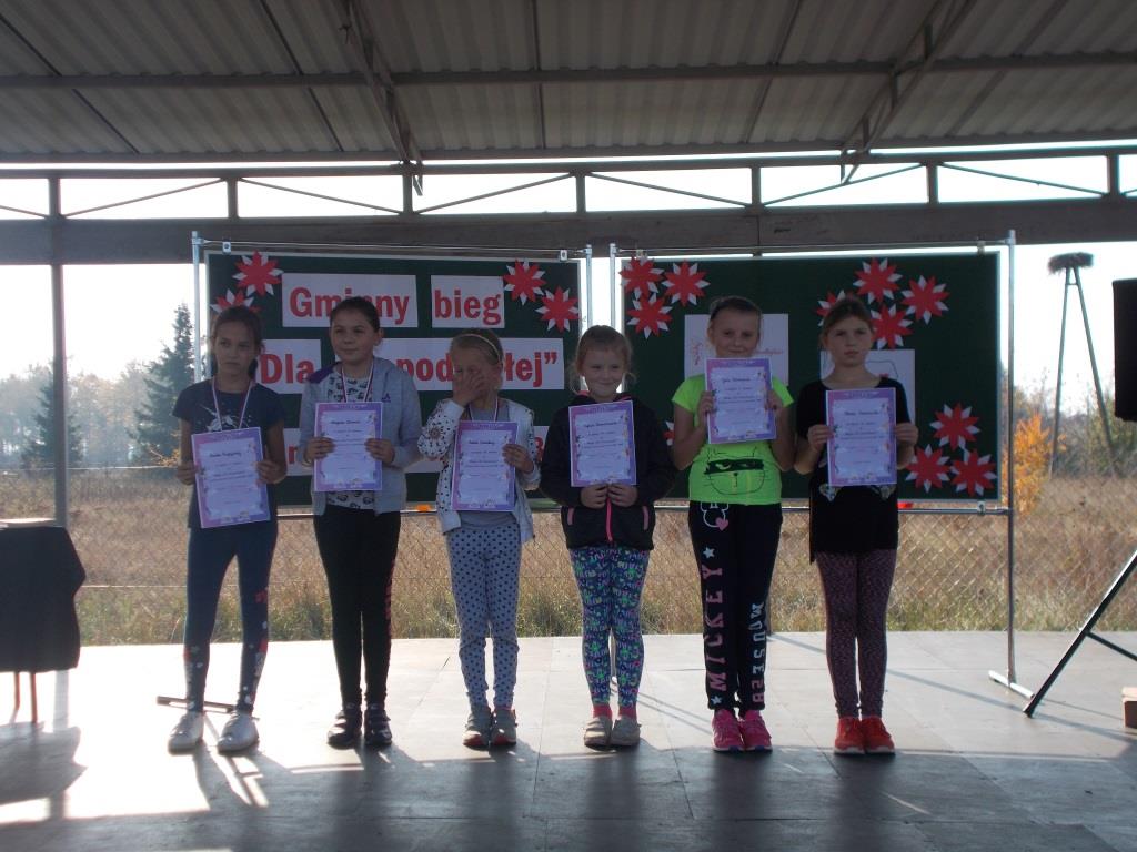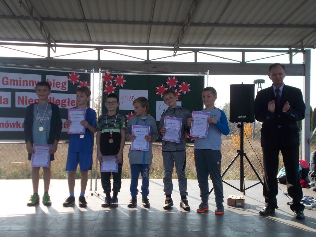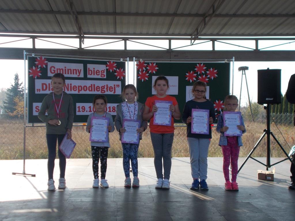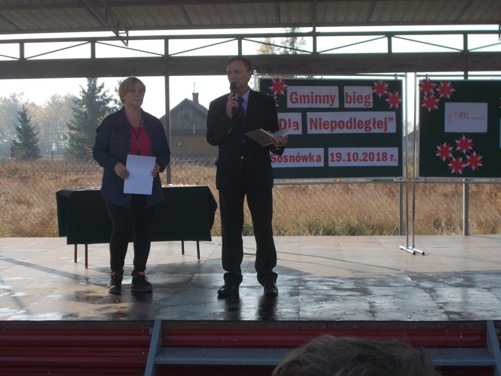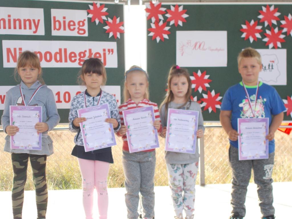 W piątek 19 października 2018 r. w pięknej jesiennej scenerii odbył się Gminny bieg „Dla Niepodległej” zorganizowany przez naszą szkołę z okazji uczczenia 100-lecia odzyskania niepodległości. Na boisku szkolnym licznie zgromadzili się uczestnicy i kibice biegu ze szkół z Gminy Sosnówka. Oprócz naszych uczniów w biegu udział wzięli również uczniowie ze Szkoły Podstawowej w Motwicy oraz Publicznego Gimnazjum w Sosnówce. Uroczystego otwarcia zawodów dokonał dyrektor szkoły pan Henryk Wyszyński. W imprezie wzięło udział 154 uczestników, którzy oprócz sportowej rywalizacji mieli możliwość wspólnej integracji. Bieg obył się w dziesięciu kategoriach wiekowych. Jako pierwsi wystartowali przedszkolacy. Zwycięzcy poszczególnych biegów zostali uhonorowani medalami oraz dyplomami. Nad organizacją biegu czuwała pani Anna Bendziuk, nauczyciel wychowania fizycznego, której pomocą służyli również nauczyciele z poszczególnych szkół. Opiekę medyczną zapewniła pielęgniarka szkolna pani Alicja Żarkiewicz.
