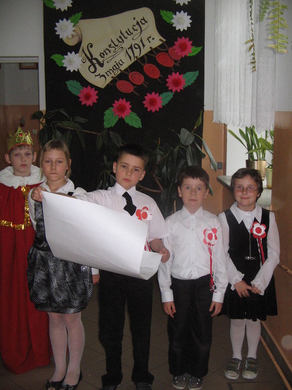 Na uroczystym apelu w dniu 7 maja 2012 r. uczciliśmy rocznicę uchwalenia Konstytucji 3 Maja. Montaż słowno – muzyczny „Witaj maj! Trzeci maj!” przygotowali uczniowie klasy II pod opieką pani Urszuli Kaźmieruk i pana Sławomira Skrzyńskiego. Podczas uroczystości nie zabrakło wspólnego odśpiewania hymnu, przypomnienia wydarzeń z historii Polski i zwrócenia uwagi na wagę i znaczenie wydarzenia, które miało miejsce 221 lat temu.