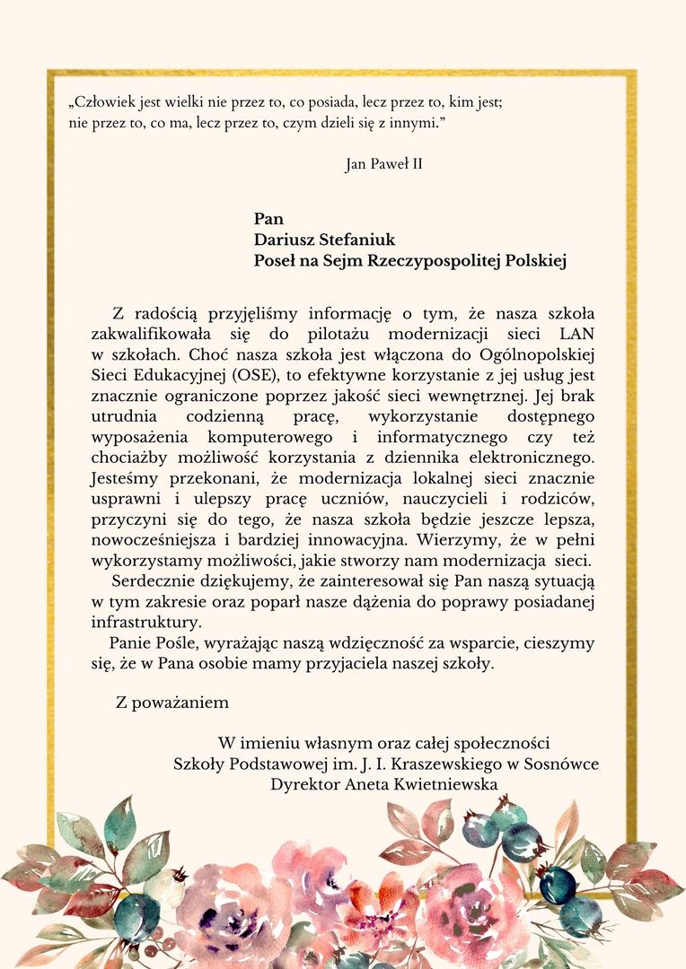 • NADANIE IMIENIA SZKOLE PODSTAWOWEJ W SOSNÓWCE