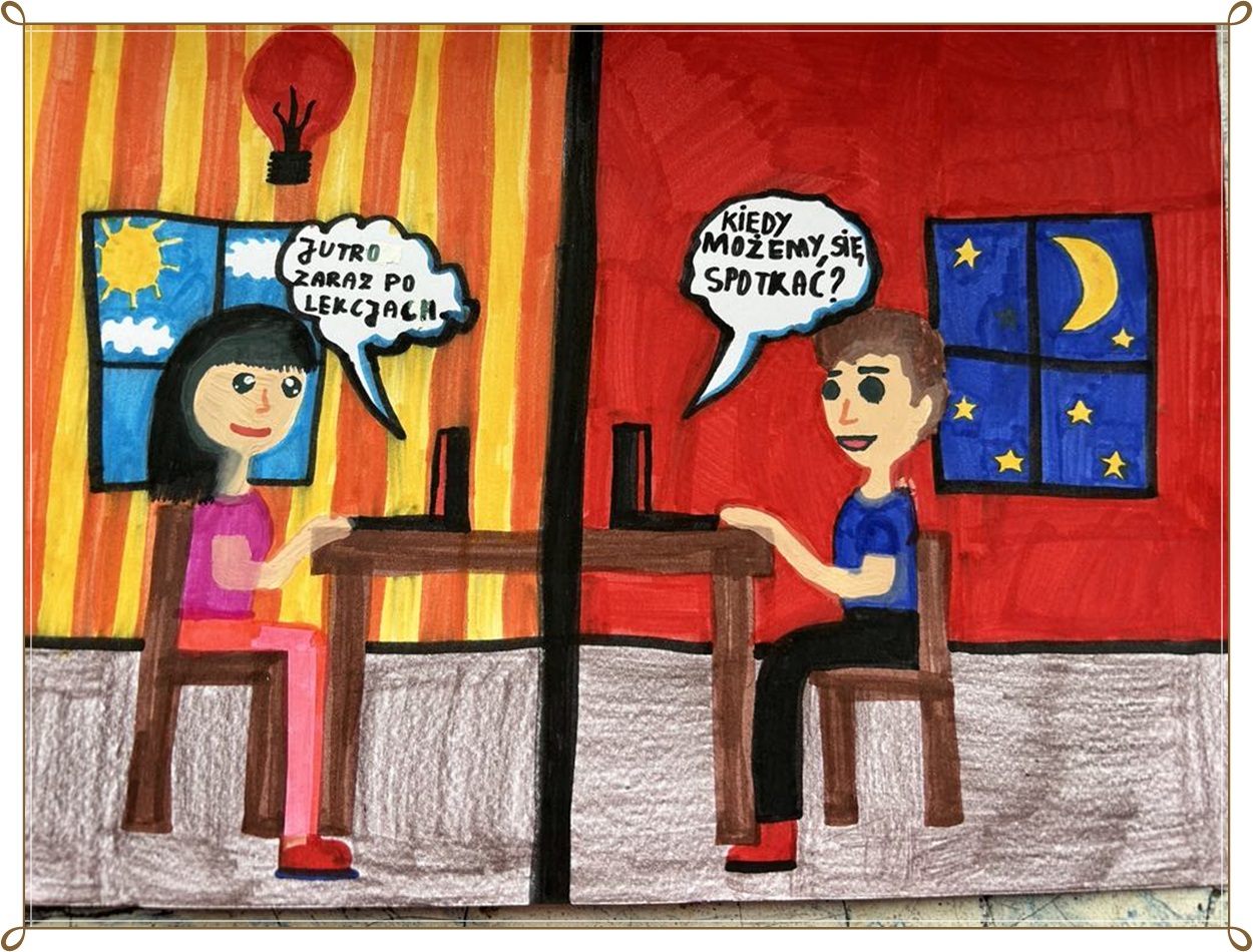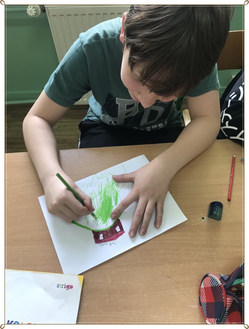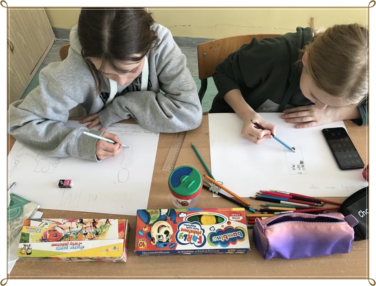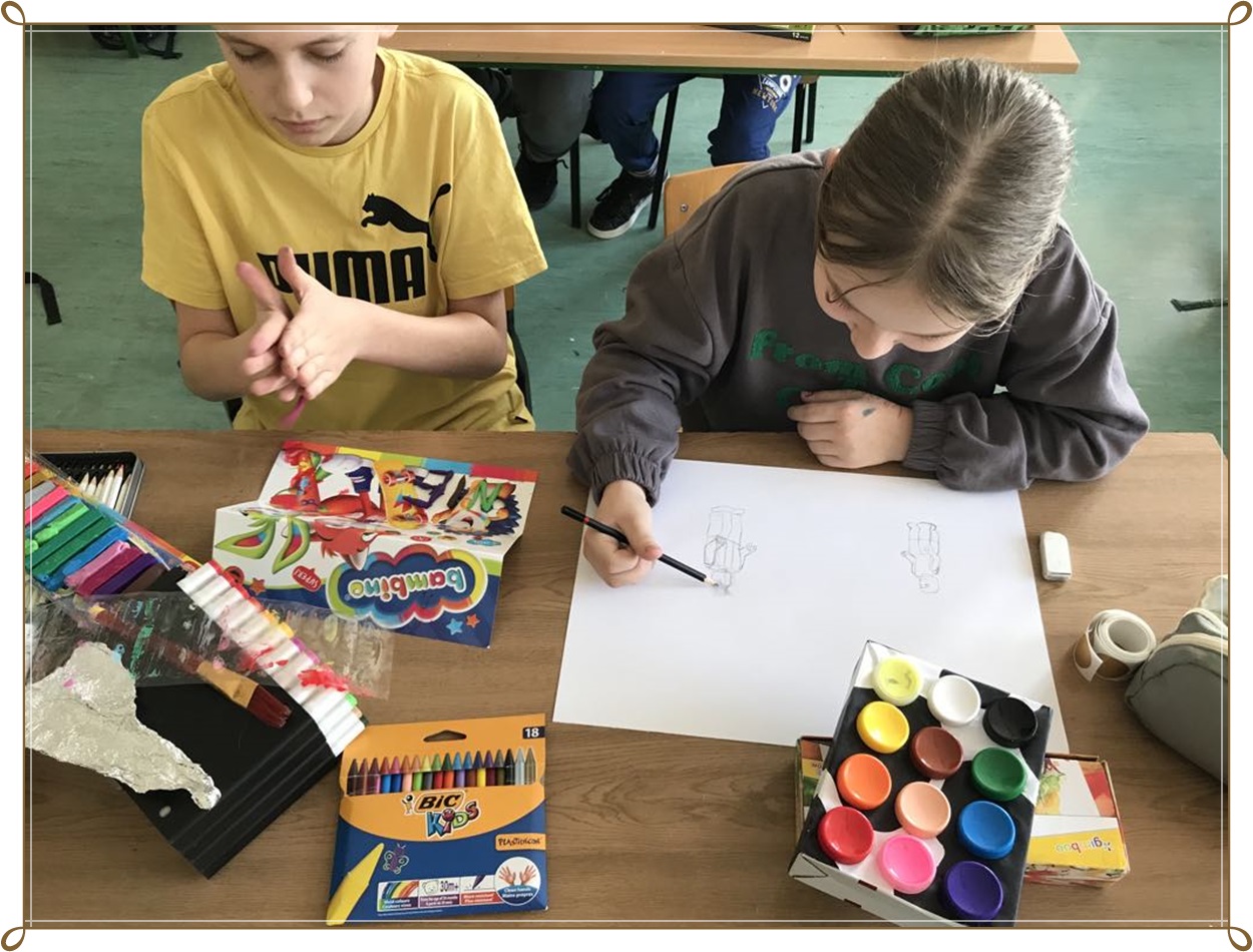 - Po zajęciach edukacyjnych uczniowie wykonywali plakaty i rysunki na temat zagrożeń jakie mogą ich spotkać w sieci i jak ich unikać. Prace prezentowane były na szkolnych gazetkach.