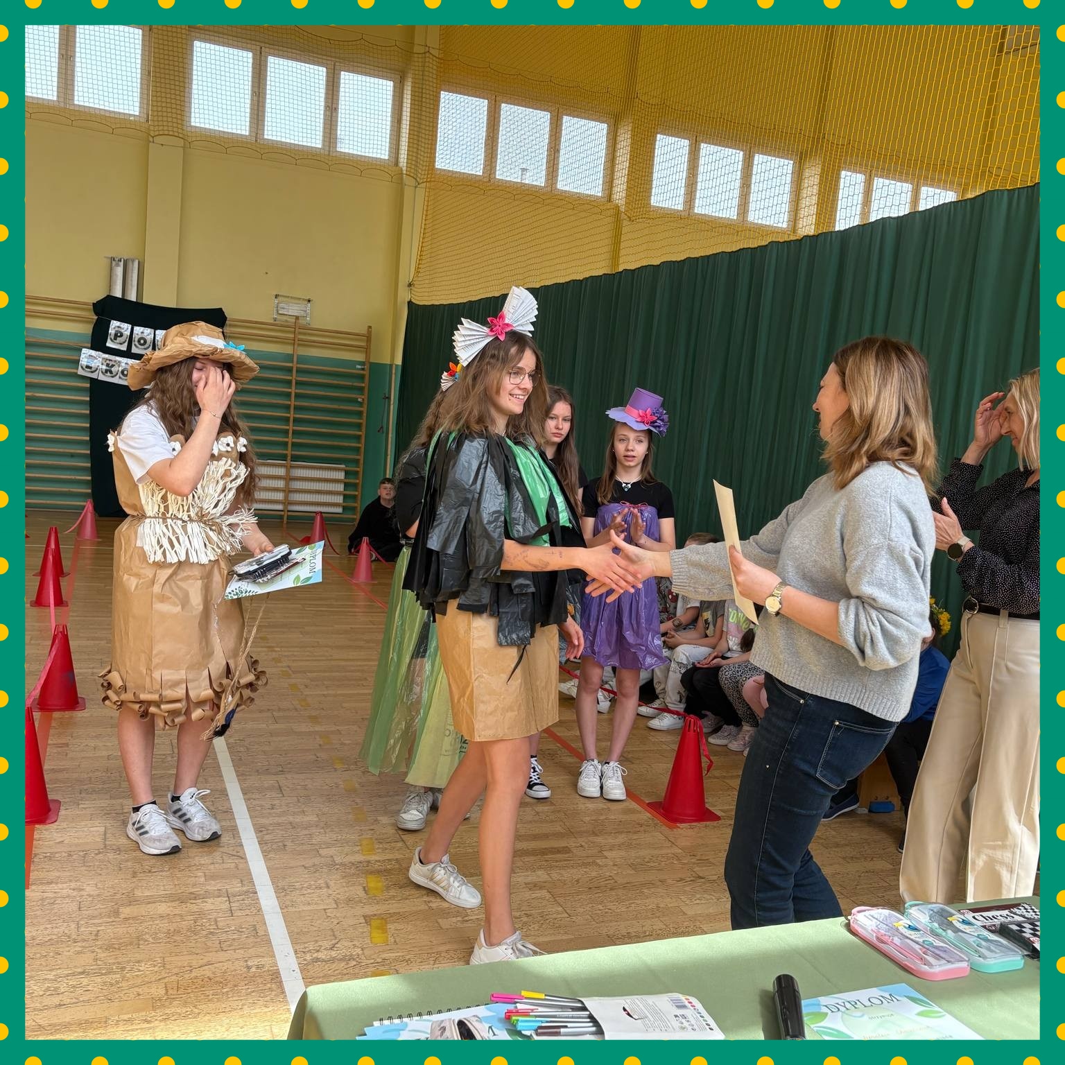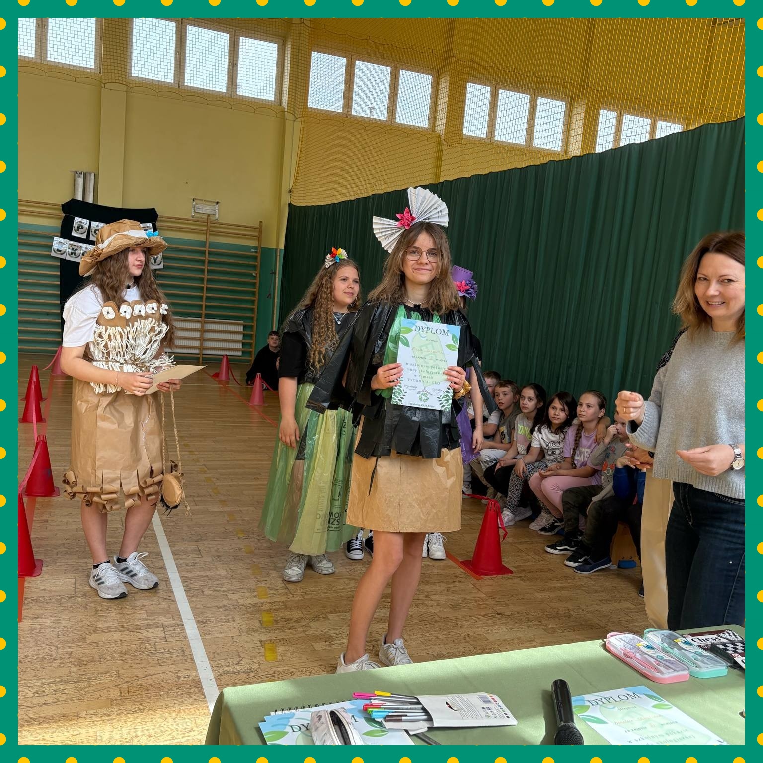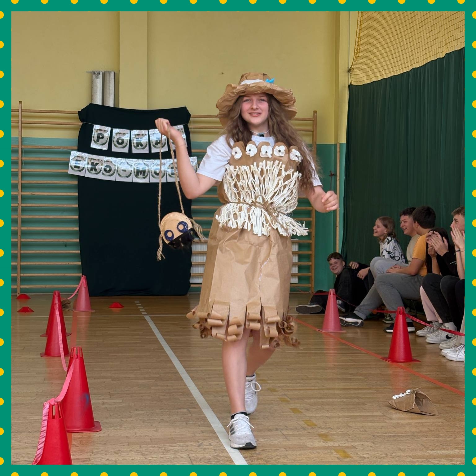 W ramach obchodów EKO TYGODNIA uczniowie klas IV – VIII dnia 30 kwietnia 2025 r. wzięli udział w wyjątkowym pokazie mody ekologicznej pod hasłem EKO MODA. Celem wydarzenia było promowanie postaw proekologicznych, zwiększenie świadomości na temat recyklingu i ponownego wykorzystania materiałów, a także rozwijanie kreatywności i wrażliwości ekologicznej wśród młodzieży. Uczniowie zaprezentowali autorskie stroje wykonane z materiałów pochodzących z recyklingu oraz surowców wtórnych – takich jak papier, plastik, folie, gazety, worki czy kartony. Ich pomysłowość, zaangażowanie i oryginalne podejście do tematu zrobiły ogromne wrażenie na jury oraz publiczności. Każda kreacja była nie tylko modowym projektem, ale również formą przekazu na temat ochrony środowiska i zrównoważonego stylu życia. Pokaz EKO MODY udowodnił, że moda i ekologia mogą iść w parze, a uczniowie naszej szkoły potrafią łączyć dobrą zabawę z ważnym przesłaniem ekologicznym. Rozstrzygnięto także konkurs na najciekawsze kreacje! Jury miało trudne zadanie, ale ostatecznie przyznało: I miejsce - Lena Tkaczuk, II miejsce - Amelia Olszówka, III miejsce - Amelia Chwalczuk, IV ex aequo – Julia Świrepa i Nikola Żarkiewicz. Wszyscy uczestnicy zostali otrzymali nagrody i pamiątkowe dyplomy, oraz ogromne brawa i uznanie publiczności!