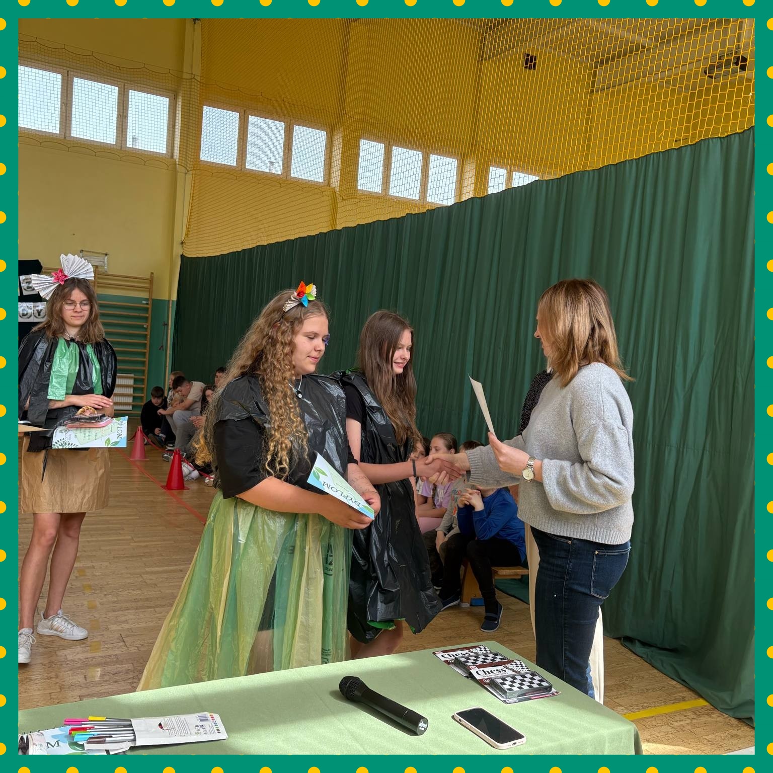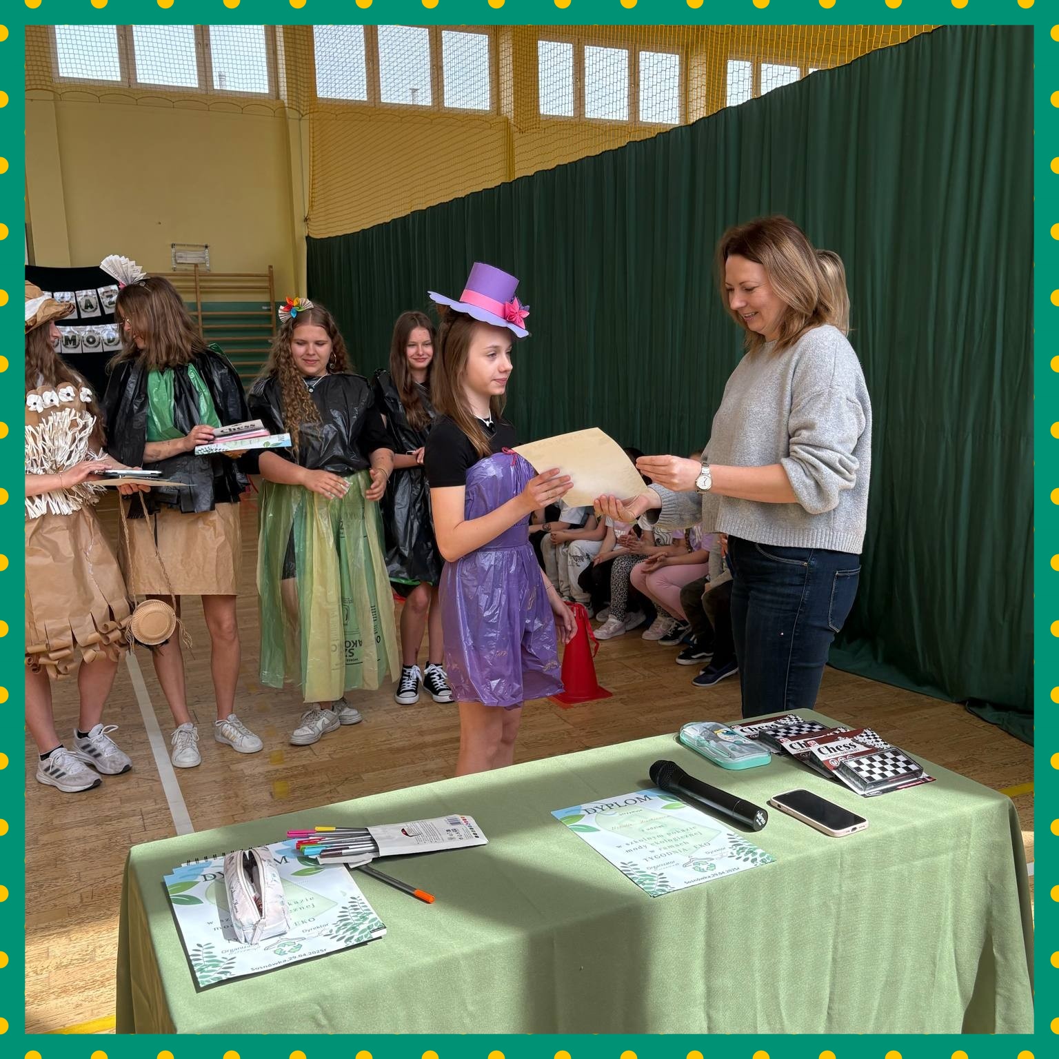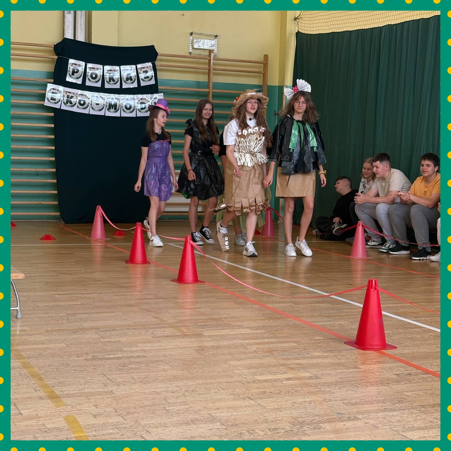 W ramach obchodów EKO TYGODNIA uczniowie klas IV – VIII dnia 30 kwietnia 2025 r. wzięli udział w wyjątkowym pokazie mody ekologicznej pod hasłem EKO MODA. Celem wydarzenia było promowanie postaw proekologicznych, zwiększenie świadomości na temat recyklingu i ponownego wykorzystania materiałów, a także rozwijanie kreatywności i wrażliwości ekologicznej wśród młodzieży. Uczniowie zaprezentowali autorskie stroje wykonane z materiałów pochodzących z recyklingu oraz surowców wtórnych – takich jak papier, plastik, folie, gazety, worki czy kartony. Ich pomysłowość, zaangażowanie i oryginalne podejście do tematu zrobiły ogromne wrażenie na jury oraz publiczności. Każda kreacja była nie tylko modowym projektem, ale również formą przekazu na temat ochrony środowiska i zrównoważonego stylu życia. Pokaz EKO MODY udowodnił, że moda i ekologia mogą iść w parze, a uczniowie naszej szkoły potrafią łączyć dobrą zabawę z ważnym przesłaniem ekologicznym. Rozstrzygnięto także konkurs na najciekawsze kreacje! Jury miało trudne zadanie, ale ostatecznie przyznało: I miejsce - Lena Tkaczuk, II miejsce - Amelia Olszówka, III miejsce - Amelia Chwalczuk, IV ex aequo – Julia Świrepa i Nikola Żarkiewicz. Wszyscy uczestnicy zostali otrzymali nagrody i pamiątkowe dyplomy, oraz ogromne brawa i uznanie publiczności!