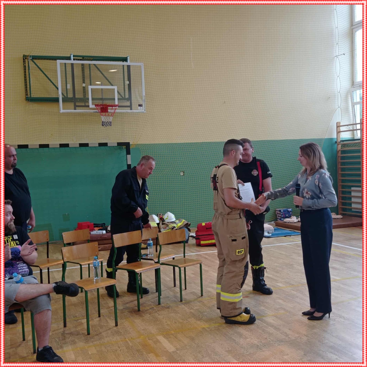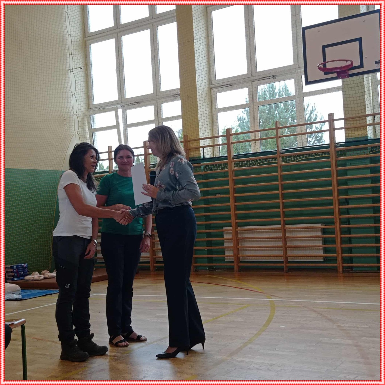 Dnia 11 września w naszej szkole odbył się piknik profilaktyczny. Został on zorganizowany we współpracy z Kołem Gospodyń Wiejskich w Wygnance, które było beneficjentem programu grantowego Drogowskaz. W ramach programu uczniowie naszej szkoły uczestniczyli w warsztatach tworzenia gier wielkoformatowych oraz zostali współautorami wielkiej gry planszowej pt. „Wygraj bezpieczeństwo!” Podczas pikniku gra ta miała swoją premierę. Rozgrywki animował pan Przemysław Góral z Good Games, która zrealizowała produkcję gry. W spotkaniu uczestniczyły również służby odpowiedzialne za bezpieczeństwo: policja, strażacy oraz pracownicy MZC we Włodawie. Szkolenie z zakresu pierwszej pomocy przedmedycznej poprowadziła pani Maria Sidor, dyrektor Szkoły Podstawowej w Motwicy, której uczniowie i nauczyciele wspólnie z nami wzięli udział w pikniku. Wszyscy uczestnicy mogli też wziąć udział w konkursie wiedzy o bezpieczeństwie oraz otrzymali odblaski. Choć pogoda nam nie dopisała, liczymy na to, że wyniesiona wiedza i normy postępowania w sytuacjach trudnych będą pomocne.