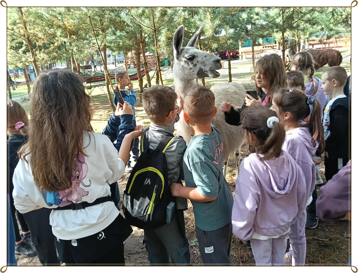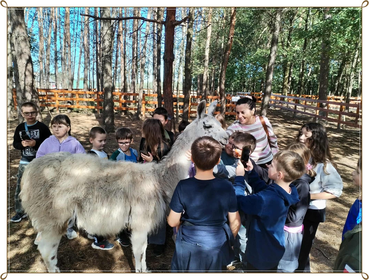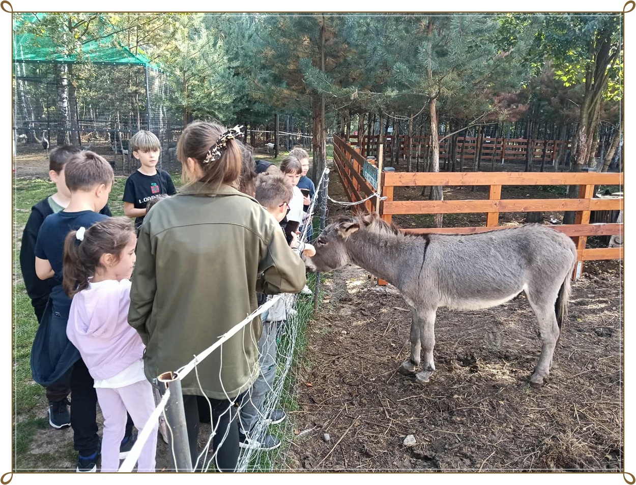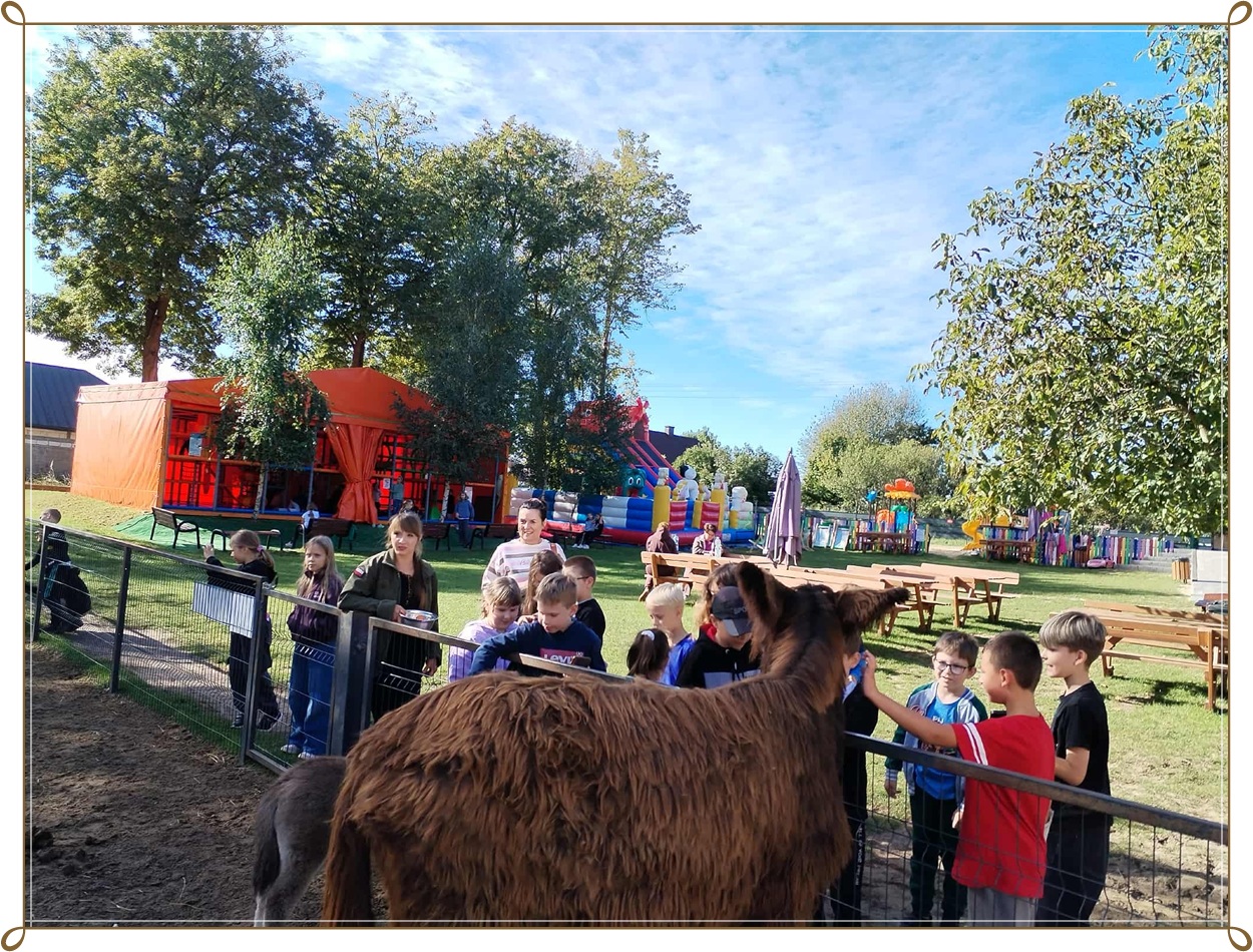 Dnia 24.09.2025 r. uczniowie z klas I - III wybrali się na wycieczkę do kina w Białej Podlaskiej i Mini Zoo Park Walim. Pierwszym punktem programu było oglądanie filmu pt. "Niesamowite przygody skarpetek 2", a kolejnym pobyt w Mini Zoo. Dzieci były zachwycone bliskim kontaktem ze zwierzętami, mogły głaskać i karmić króliki, alpaki, osiołki. Dodatkowymi atrakcjami jakie czekały na naszych milusińskich był park linowy, zjeżdżalnia, dmuchańce, trampolina i zewnętrzna sala zabaw. W drodze powrotnej wstąpiliśmy posilić się w McDonaldzie. To był dzień pełen wrażeń i atrakcji.