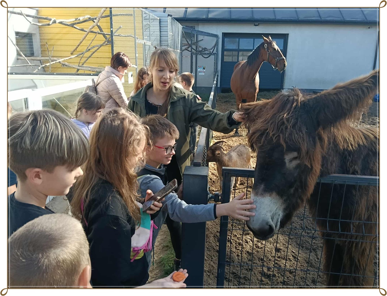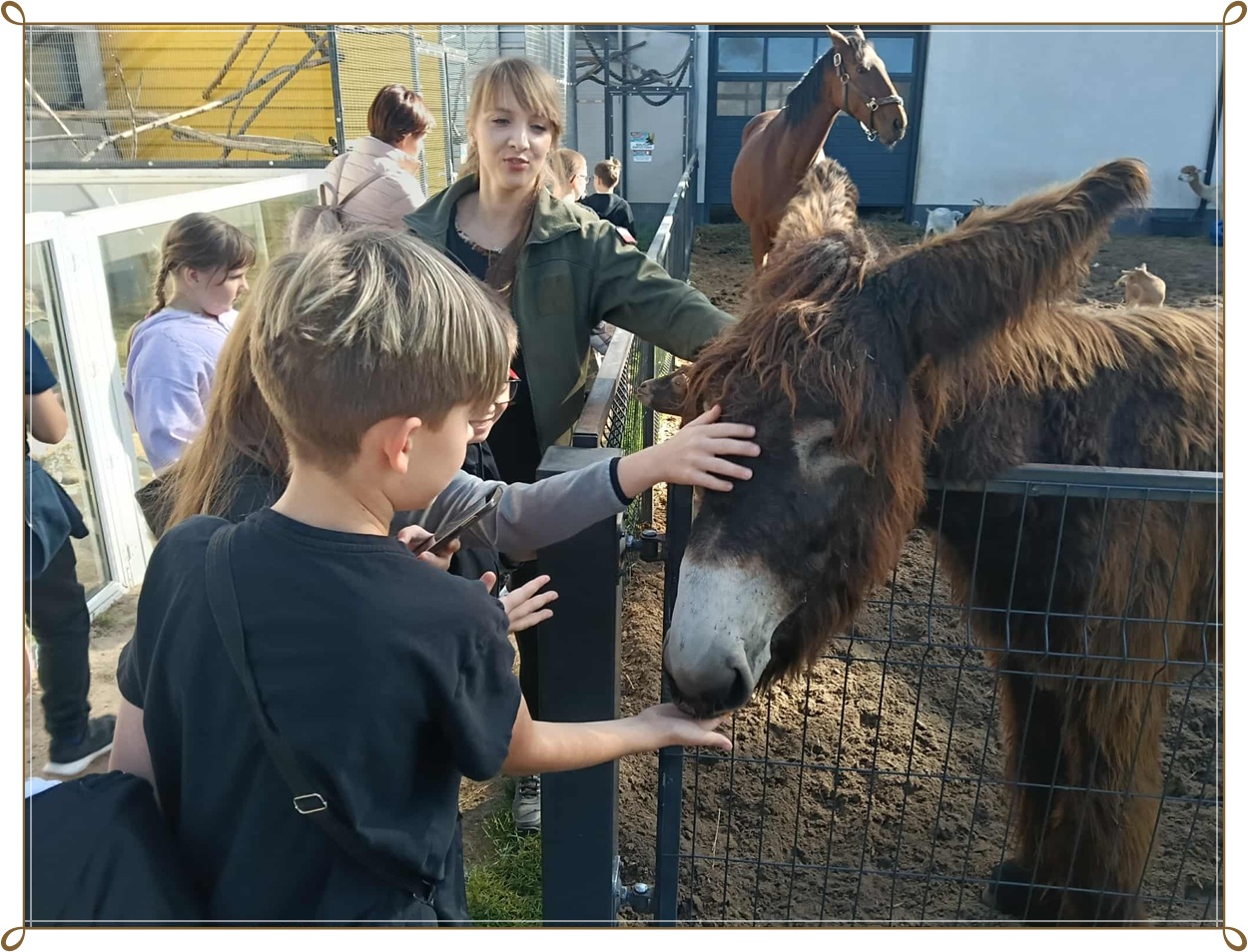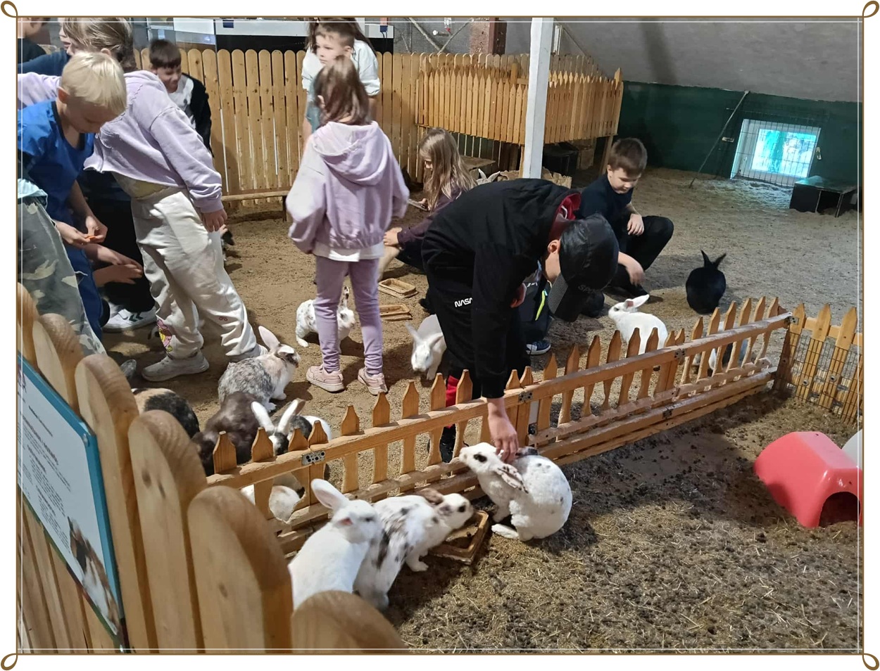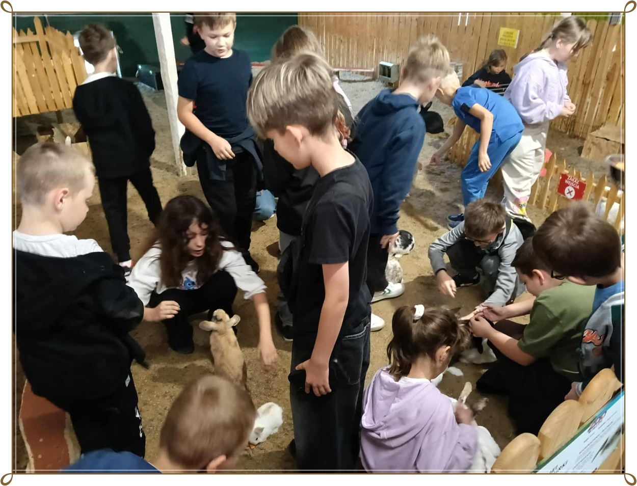 Dnia 24.09.2025 r. uczniowie z klas I - III wybrali się na wycieczkę do kina w Białej Podlaskiej i Mini Zoo Park Walim. Pierwszym punktem programu było oglądanie filmu pt. "Niesamowite przygody skarpetek 2", a kolejnym pobyt w Mini Zoo. Dzieci były zachwycone bliskim kontaktem ze zwierzętami, mogły głaskać i karmić króliki, alpaki, osiołki. Dodatkowymi atrakcjami jakie czekały na naszych milusińskich był park linowy, zjeżdżalnia, dmuchańce, trampolina i zewnętrzna sala zabaw. W drodze powrotnej wstąpiliśmy posilić się w McDonaldzie. To był dzień pełen wrażeń i atrakcji.