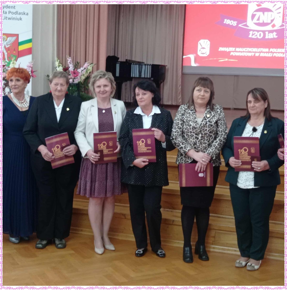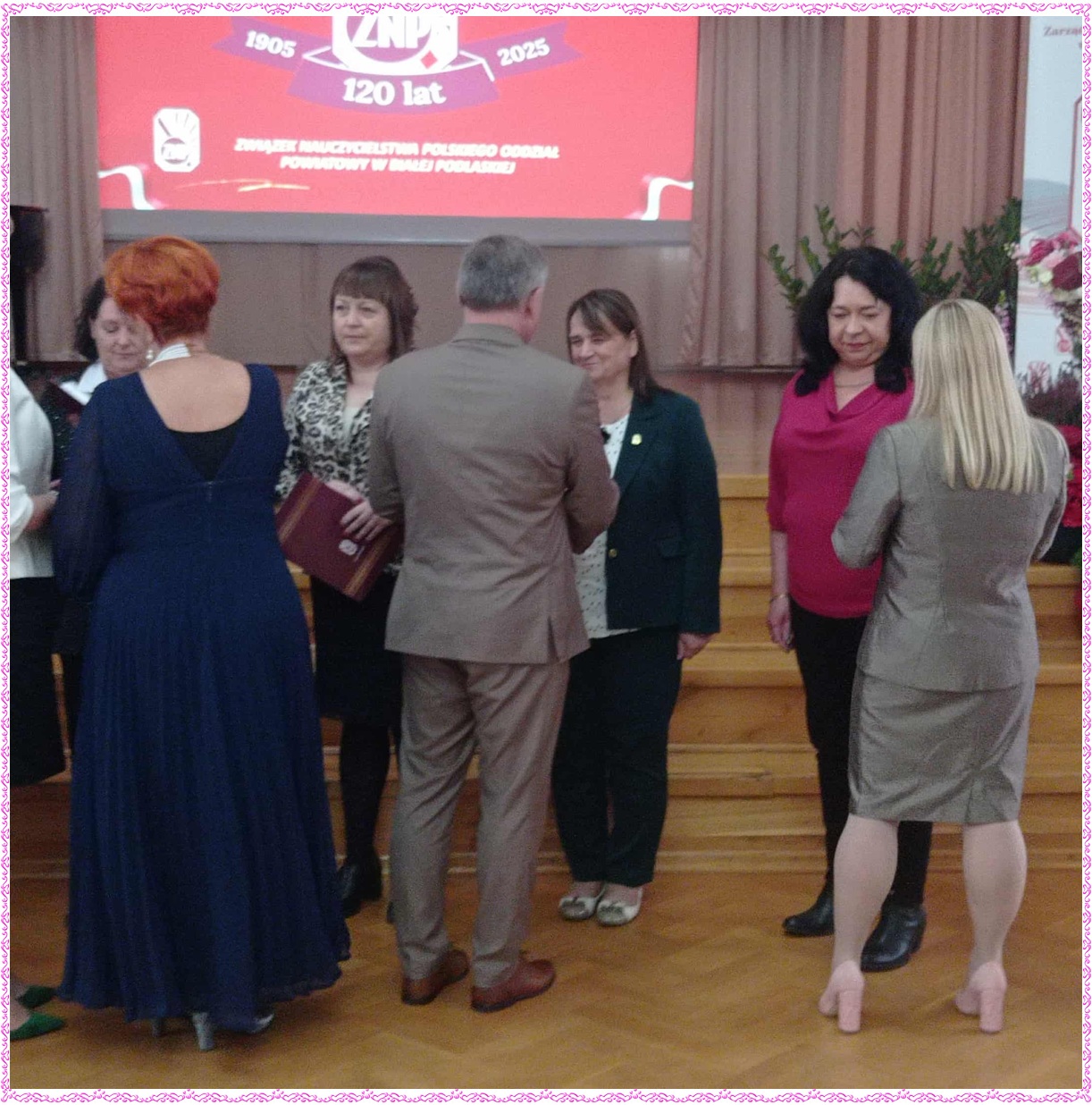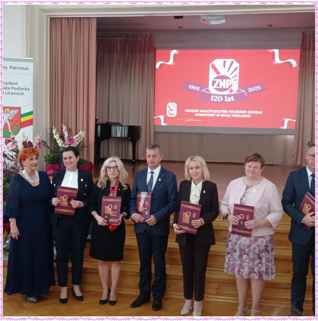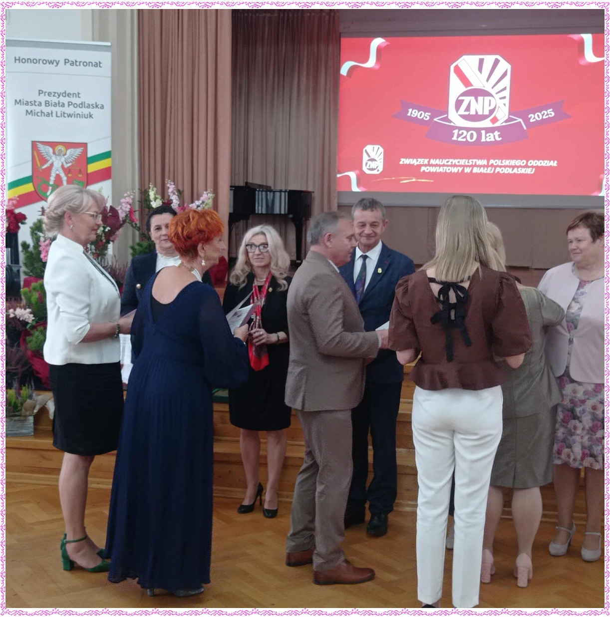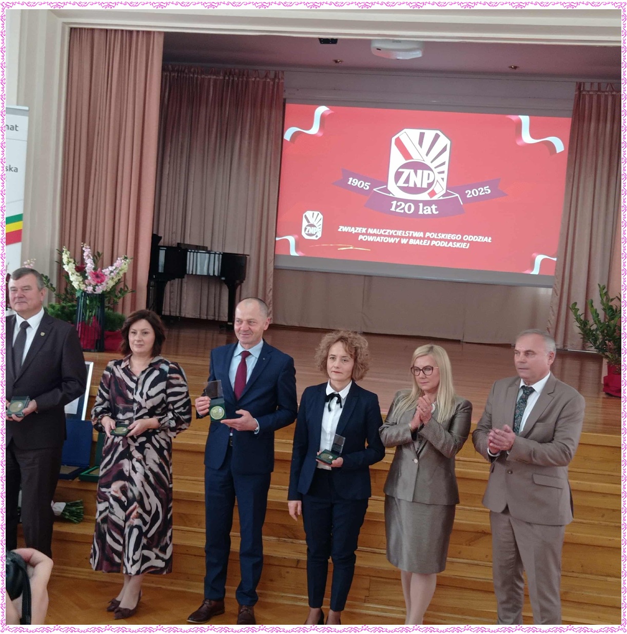 Dnia 18 października 2025 roku w Zespole Szkół Zawodowych nr 1 im. Komisji Edukacji Narodowej w Białej Podlaskiej odbyła się wyjątkowa uroczystość z okazji 120-lecia Związku Nauczycielstwa Polskiego. Podczas jubileuszowego spotkania uhoronowano zasłużonych nauczycieli, którzy swoją pracą, zaangażowaniem oraz pasją przyczyniają się do rozwoju oświaty oraz środowiska nauczycielskiego. Wręczono Złote Odznaki ZNP – najwyższe wyróżnienie przyznawane przez Związek Nauczycielstwa Polskiego. Z ogromną radością informujemy, że w gronie odznaczonych znaleźli się nauczyciele naszej szkoły: pani Alina Dawidiuk, pani Alicja Lewczuk, pani Anna Olejnik i pan Sławomir Skrzyński. W uroczystości wzięli udział również pani Magdalena Chotyniec – prezes Ogniska ZNP w Sosnówce, pani Krystyna Pawlik w zastępstwie za panią dyrektor Anetę Kwietniewską oraz pani Barbara Rabczewska – sekretarz Gminy Sosnówka, która w imieniu Wójta Gminy Sosnówka pana Marcina Babkiewicza odebrała medal 120-lecia ZNP. Serdecznie gratulujemy tego wyjątkowego wyróżnienia!