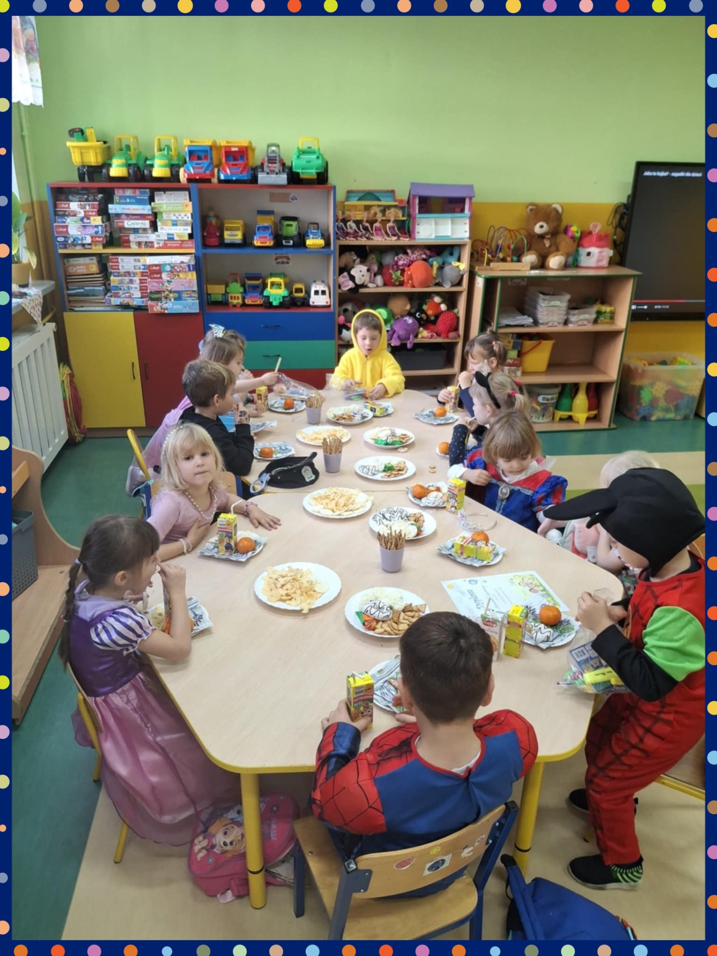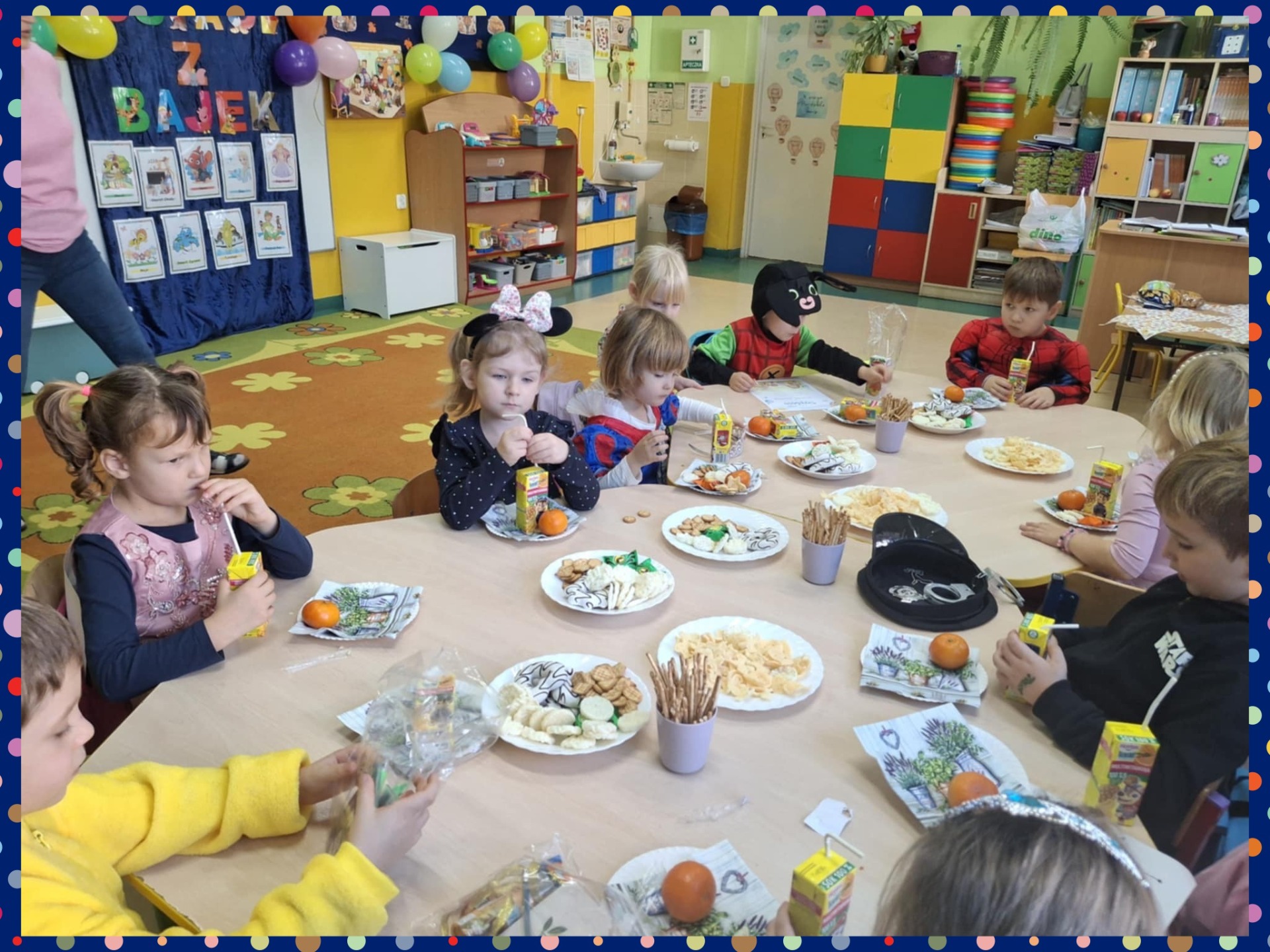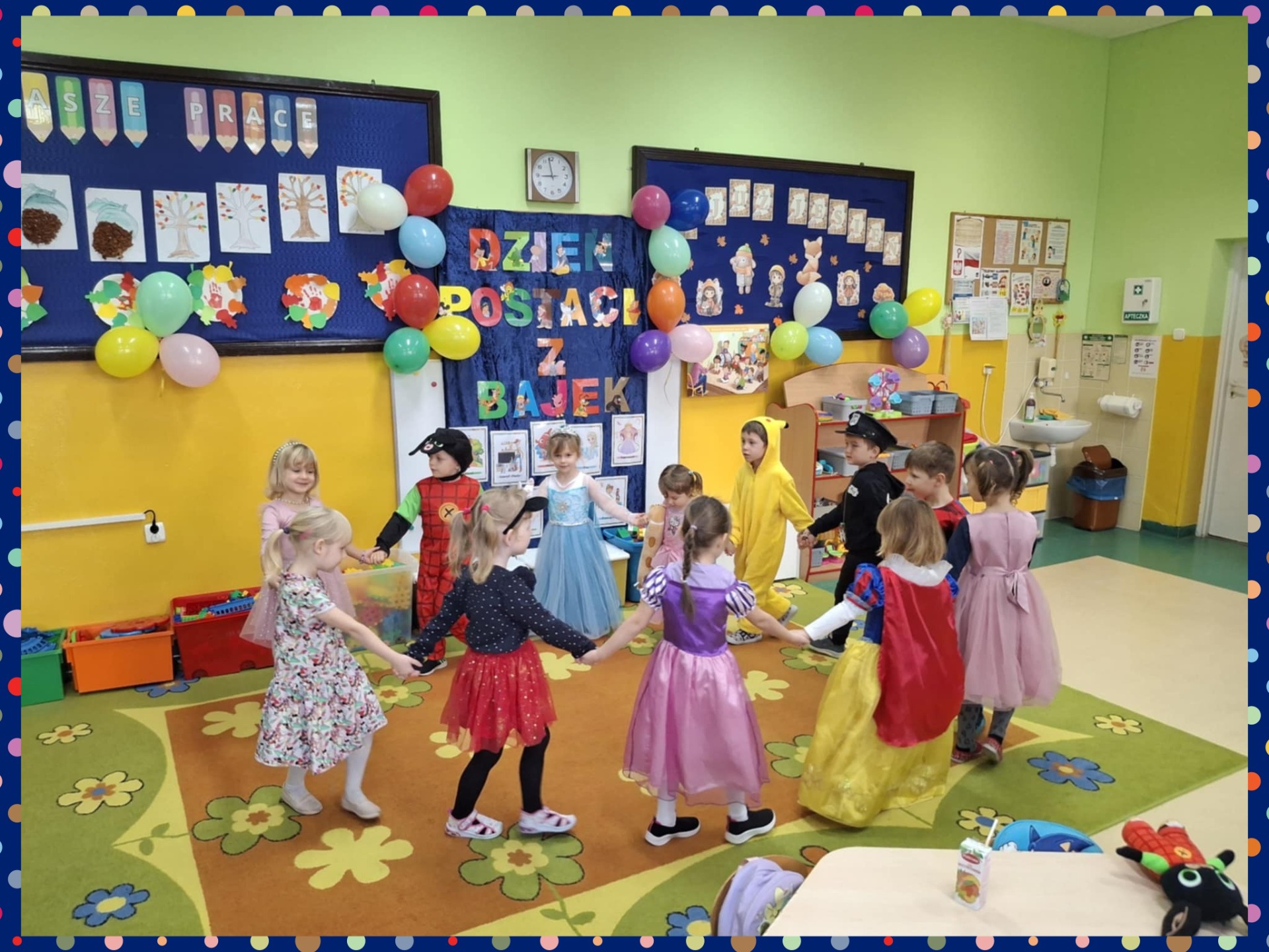 Bajki towarzyszą nam od najmłodszych lat, rozweselają i bawią. Dzień Postaci z Bajek to święto, które ma na celu przypomnienie, jak ważną rolę odgrywają bajki w życiu dzieci, wpływając na ich wyobraźnię, kreatywność oraz ucząc podstawowych wartości, takich jak dobro, odwaga, przyjaźń i empatia. W naszym przedszkolu Dzień Postaci z Bajek odbył się 7 listopada 2025 r. W tym dniu dzieci przyszły przebrane w stroje swoich ulubionych postaci z bajek. W tym dniu zabawom, konkursom i tańcom nie było końca. Dzieci rozpoznawały bajkowe postaci i tytuły bajek po rekwizytach. Rozwiązywały bajkowe zagadki oraz wykonywały bajkowe zadania. Były muzyczne bajkowe zgadywanki, zabawy ruchowe oraz prezentacje dziecięcych przebrań. Odbyło się również rozstrzygnięcie konkursu plastycznego „ Moja ulubiona postać z bajki”. Dzieci otrzymały nagrody i dyplomy za piękne prace, które wręczyła pani dyrektor. Dopełnieniem całości był słodki poczęstunek.