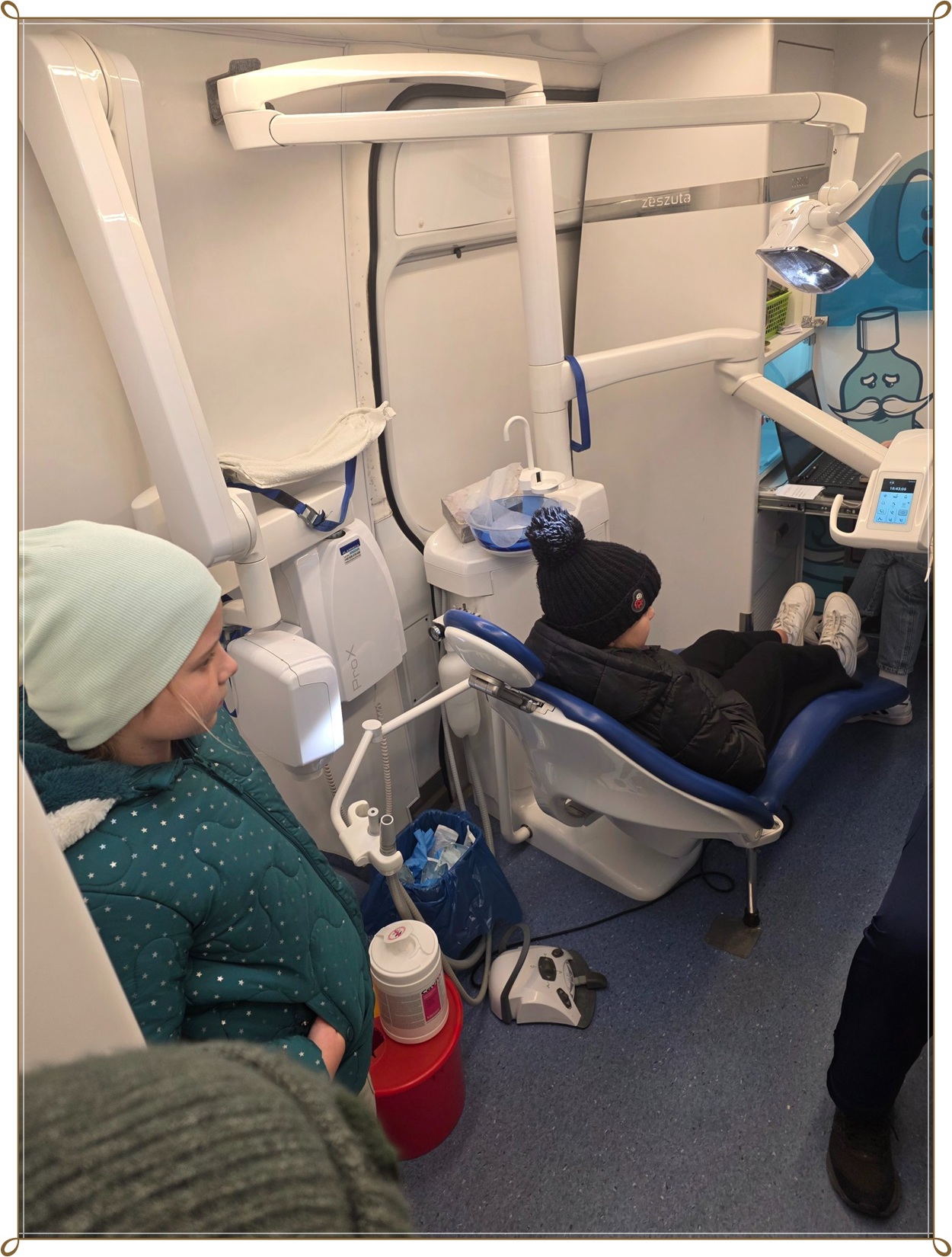 W dniach 27 i 28 listopada naszą szkołę odwiedził DENTOBUS, czyli mobilny gabinet stomatologiczny. Uczniowie mieli możliwość skorzystania z bezpłatnych przeglądów stomatologicznych oraz zabiegów profilaktycznych wykonywanych na miejscu przez wykwalifikowany personel medyczny. Głównym celem wizyty DENTOBUSU było badanie kontrolne jamy ustnej, profilaktyka fluorowa, wczesne wykrywanie próchnicy, ocena stanu uzębienia dzieci, leczenie stomatologiczne oraz promowanie zdrowych nawyków higieny jamy ustnej. Dzięki takim działaniom możliwe jest szybkie zauważenie ewentualnych problemów i skierowanie uczniów na dalsze działania, zanim pojawią się poważniejsze dolegliwości. Dla naszych uczniów to nie tylko okazja do zadbania o zdrowie, ale także ważna lekcja, jak dbać o zęby na co dzień. Regularne przeglądy stomatologiczne pomagają budować świadomość, że troska o uśmiech zaczyna się od profilaktyki.