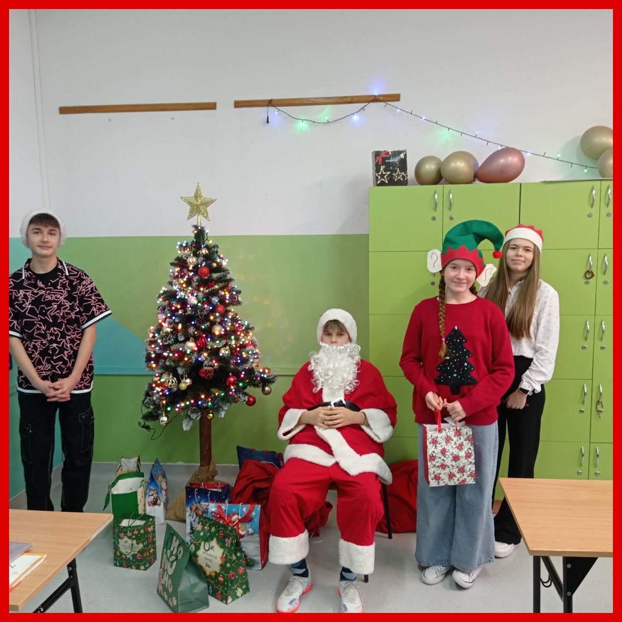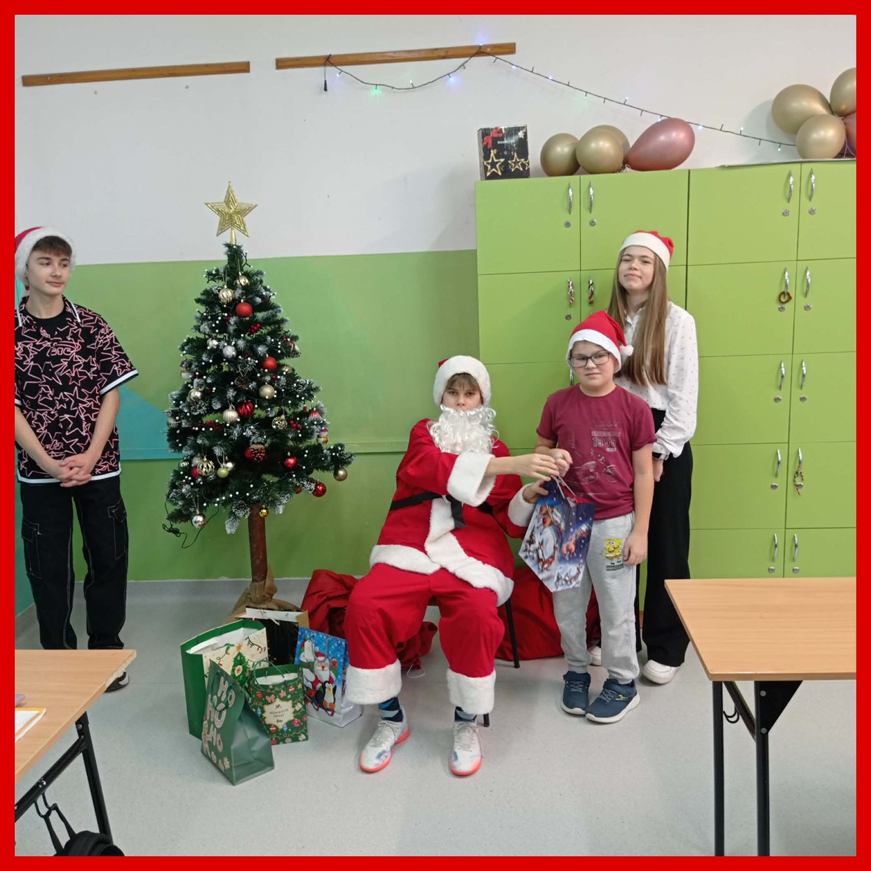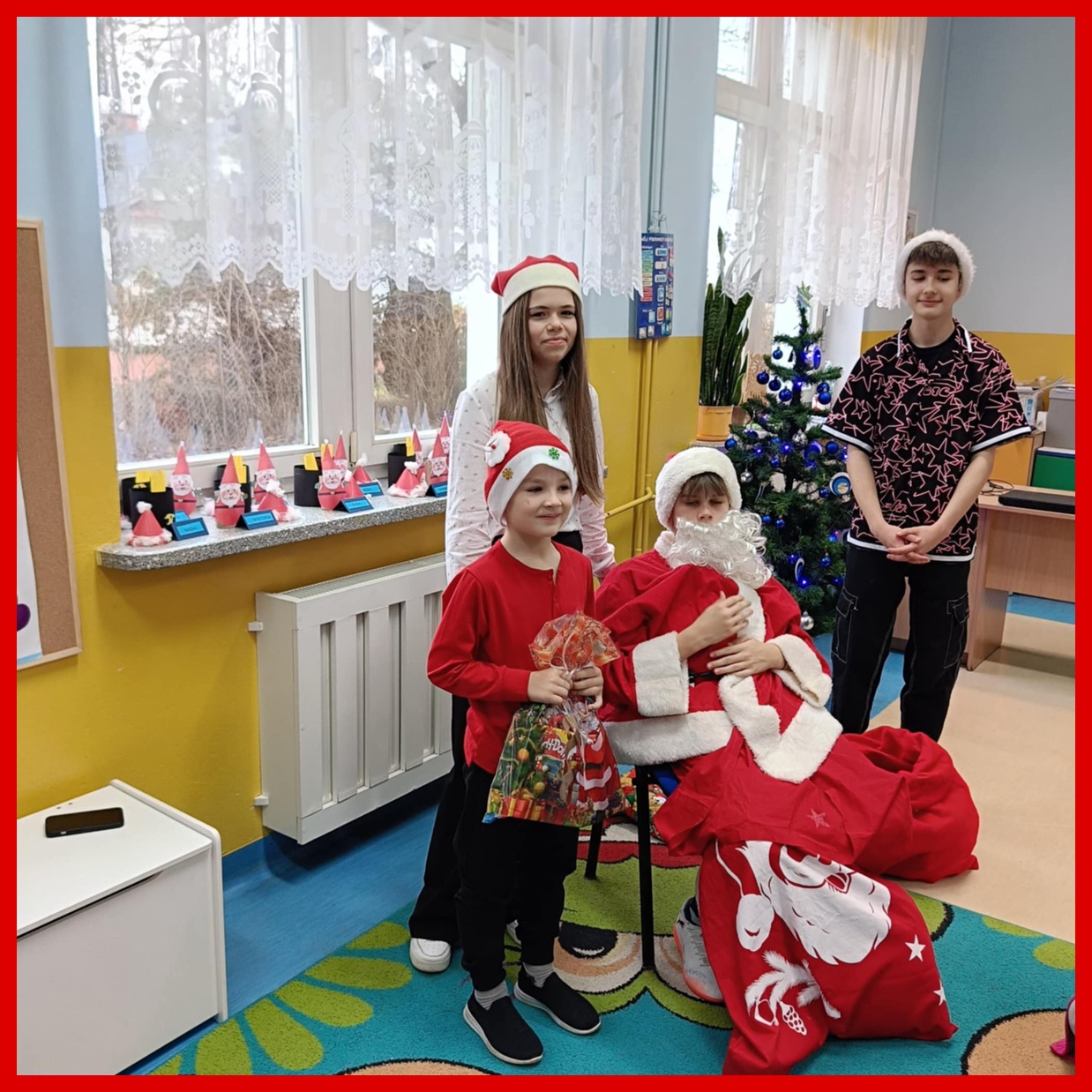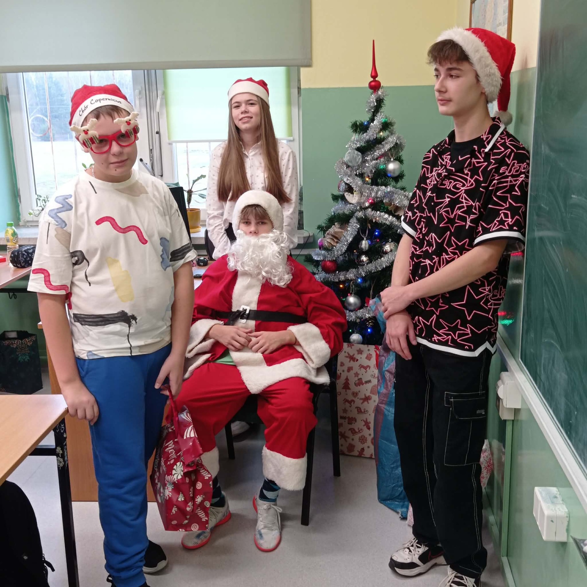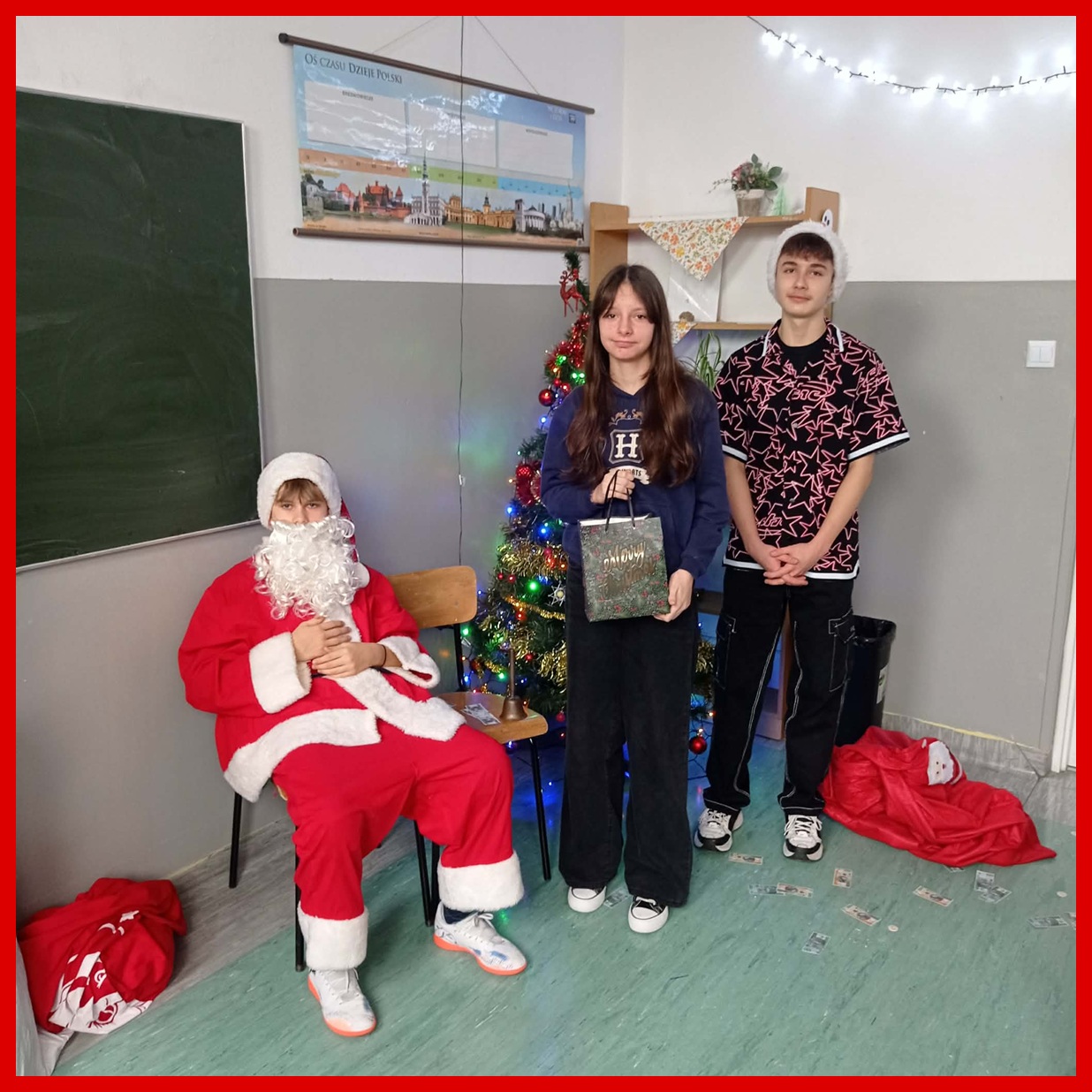 Dnia 5 grudnia 2025 roku naszą szkołę odwiedził Święty Mikołaj z prezentami. Wszyscy witali go z ogromną radością, były zdjęcia i rozmowy. Aby podkreślić świąteczny nastrój Samorząd Uczniowski zachęcił wszystkich do przebrania się w stroje z elementami świątecznymi. Był to bardzo udany dzień.