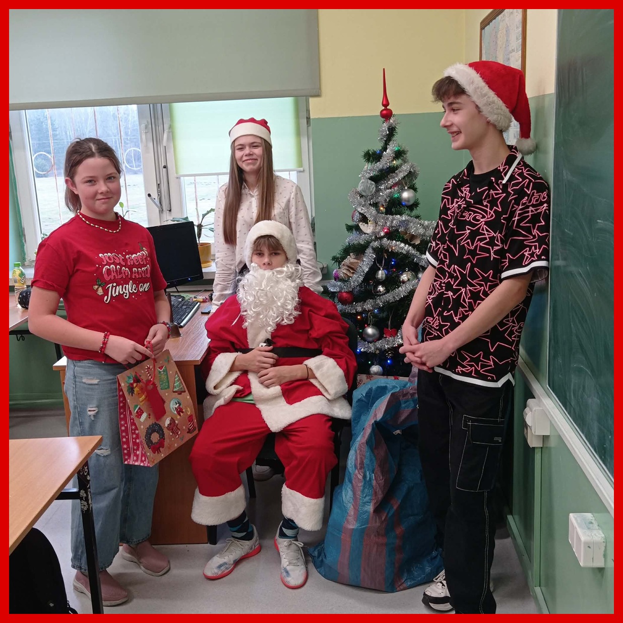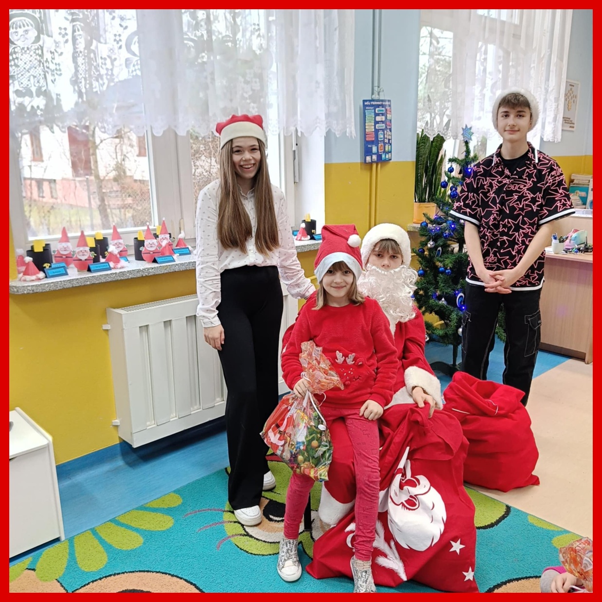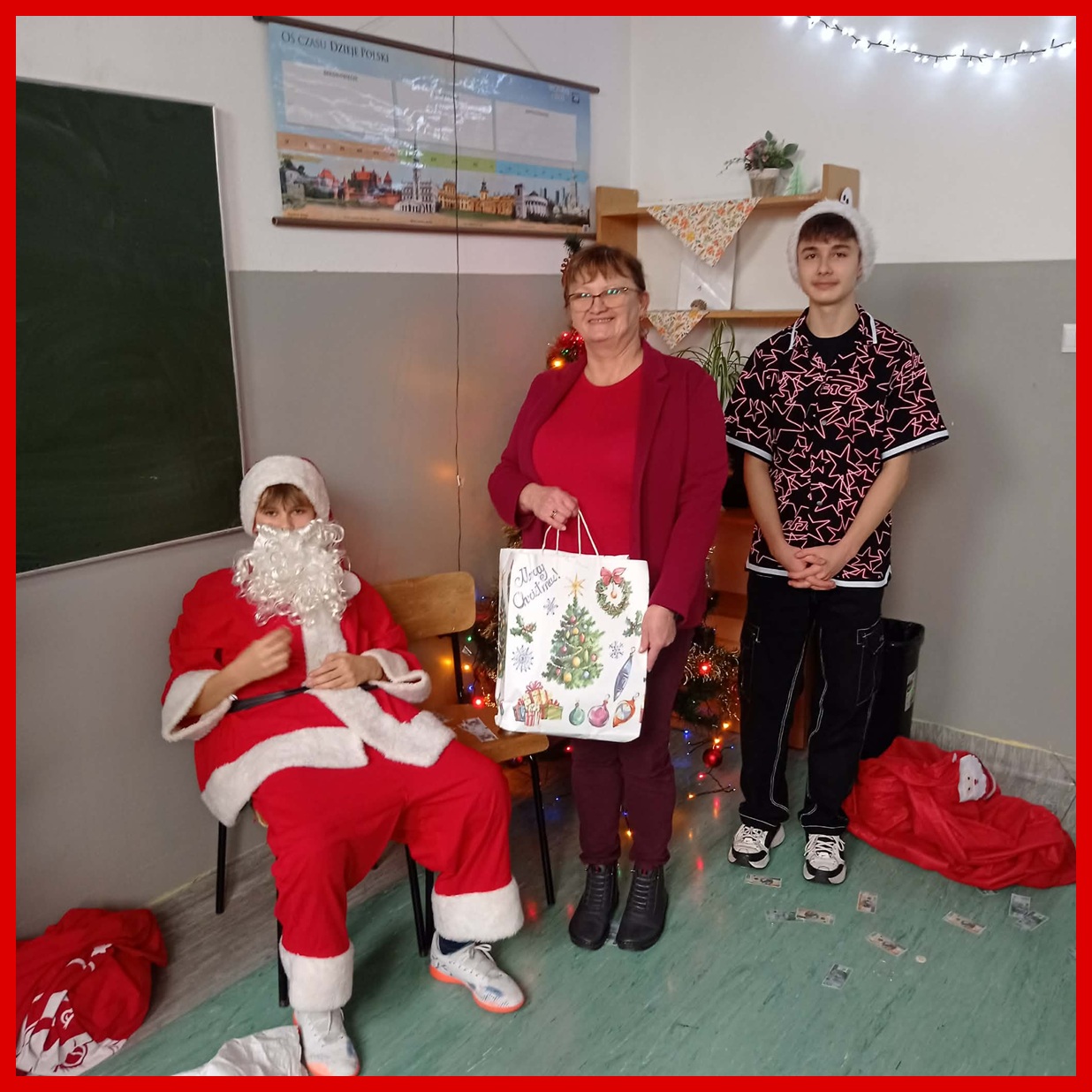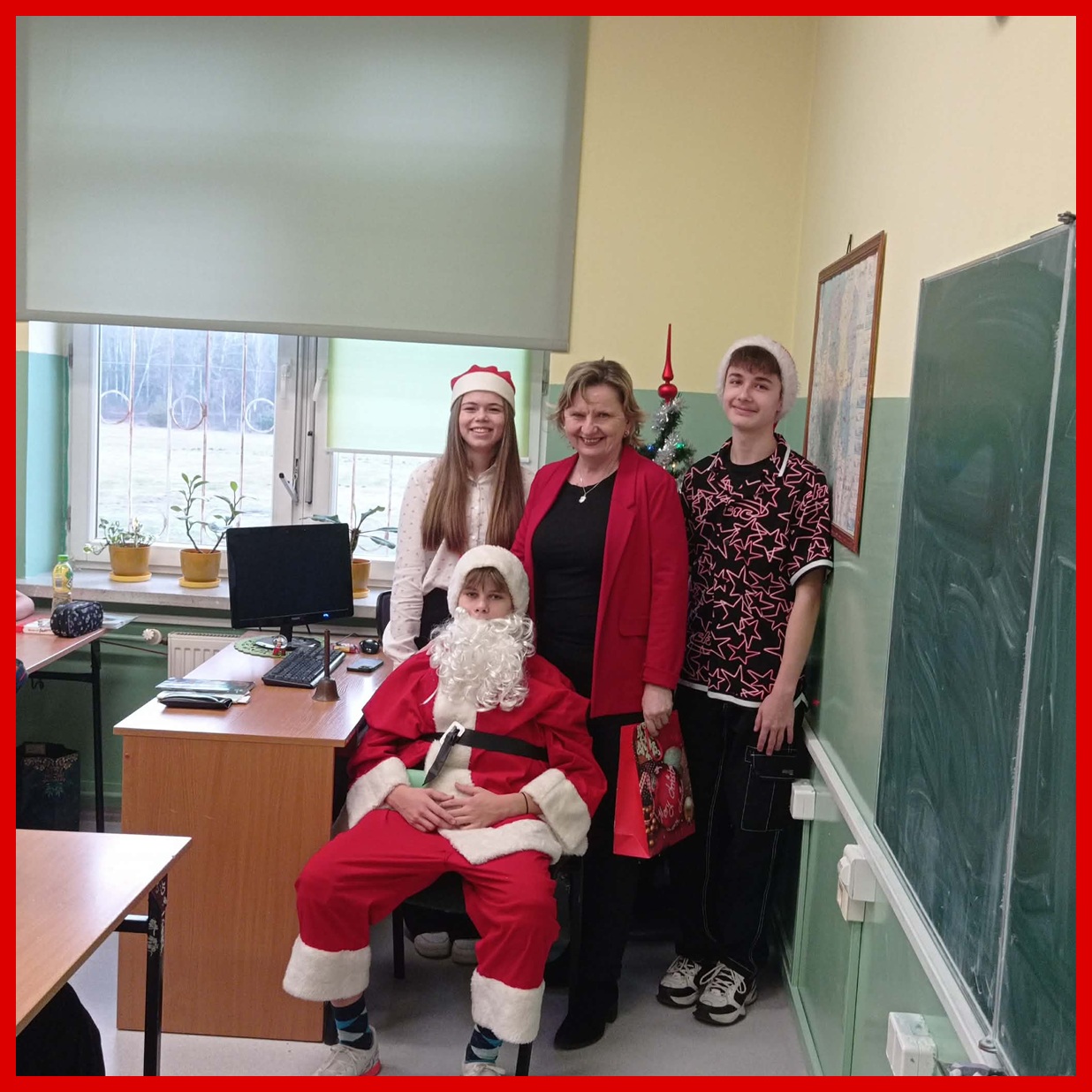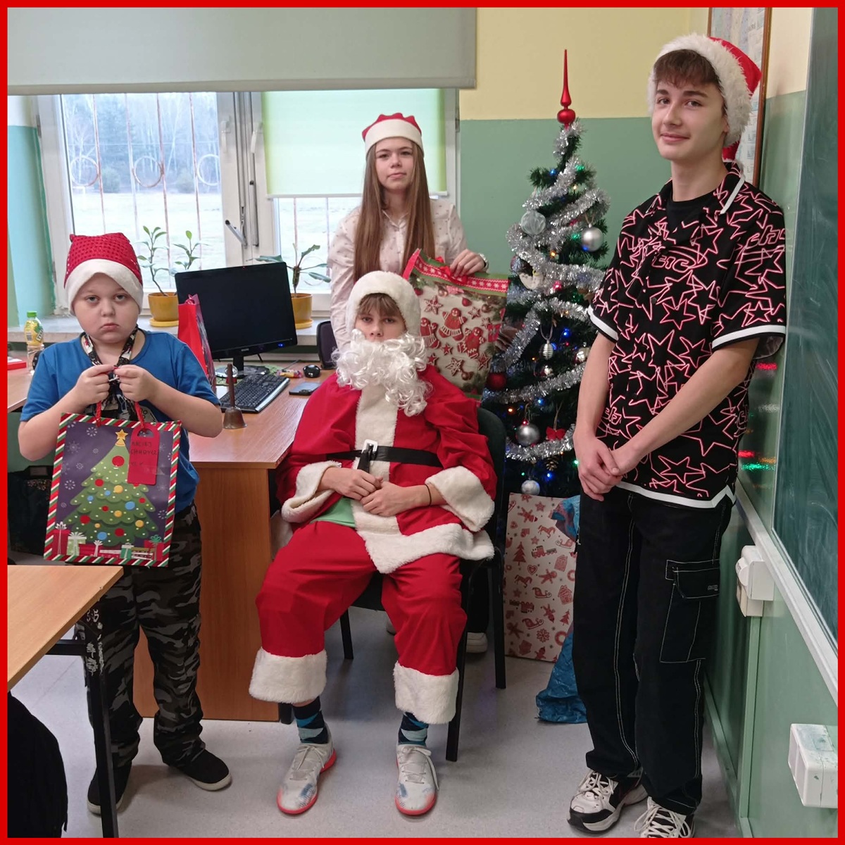 Dnia 5 grudnia 2025 roku naszą szkołę odwiedził Święty Mikołaj z prezentami. Wszyscy witali go z ogromną radością, były zdjęcia i rozmowy. Aby podkreślić świąteczny nastrój Samorząd Uczniowski zachęcił wszystkich do przebrania się w stroje z elementami świątecznymi. Był to bardzo udany dzień.