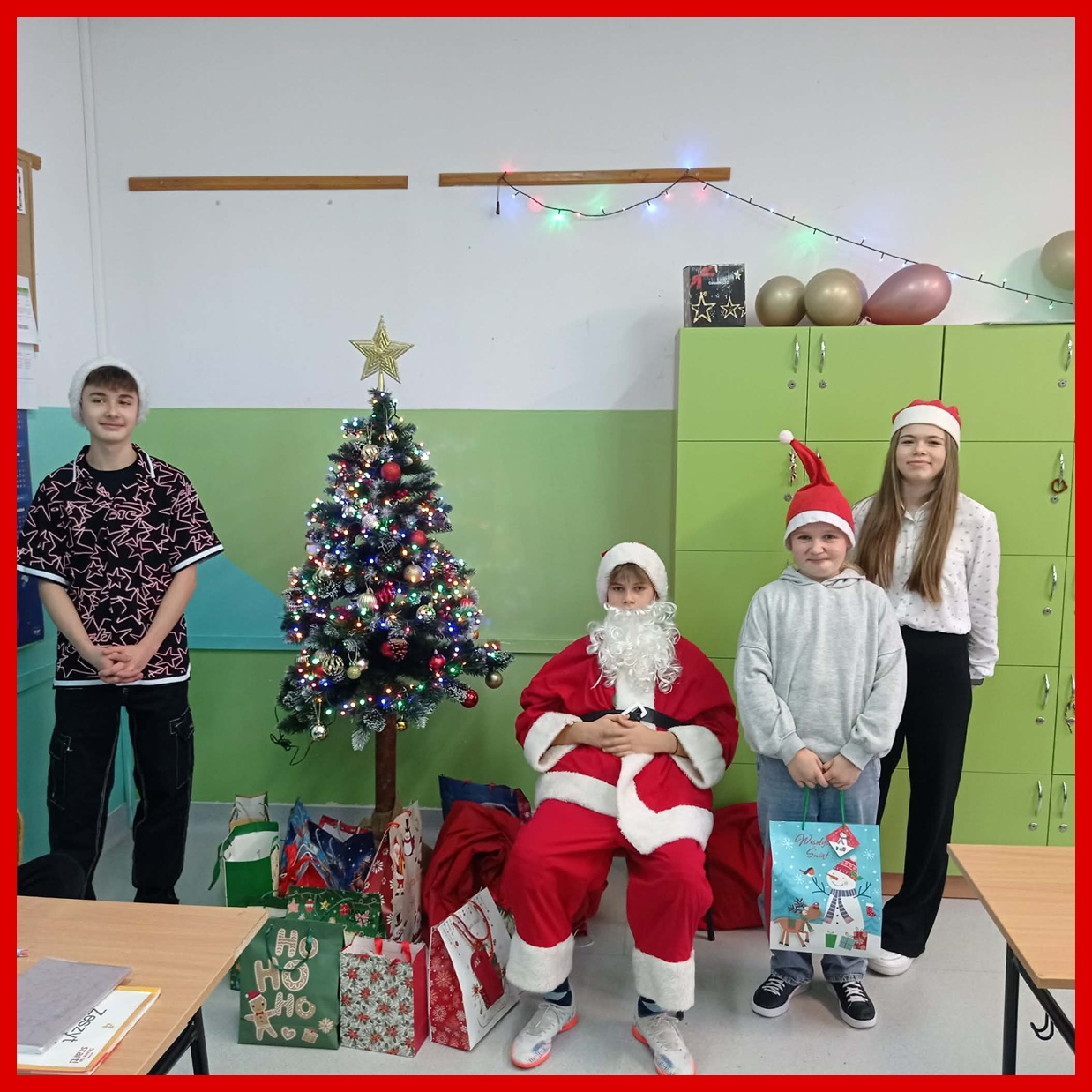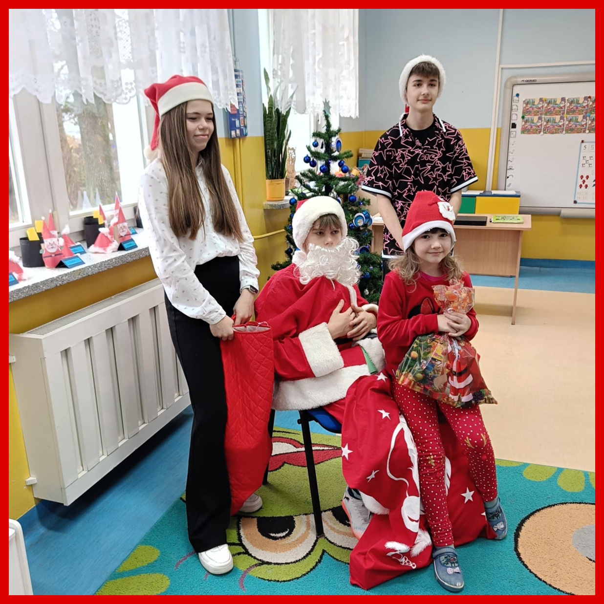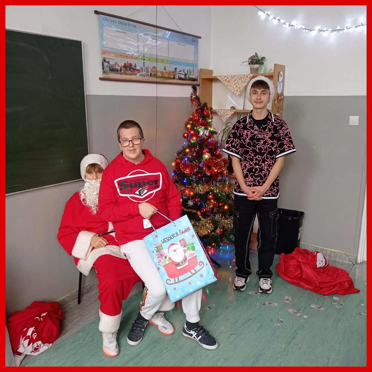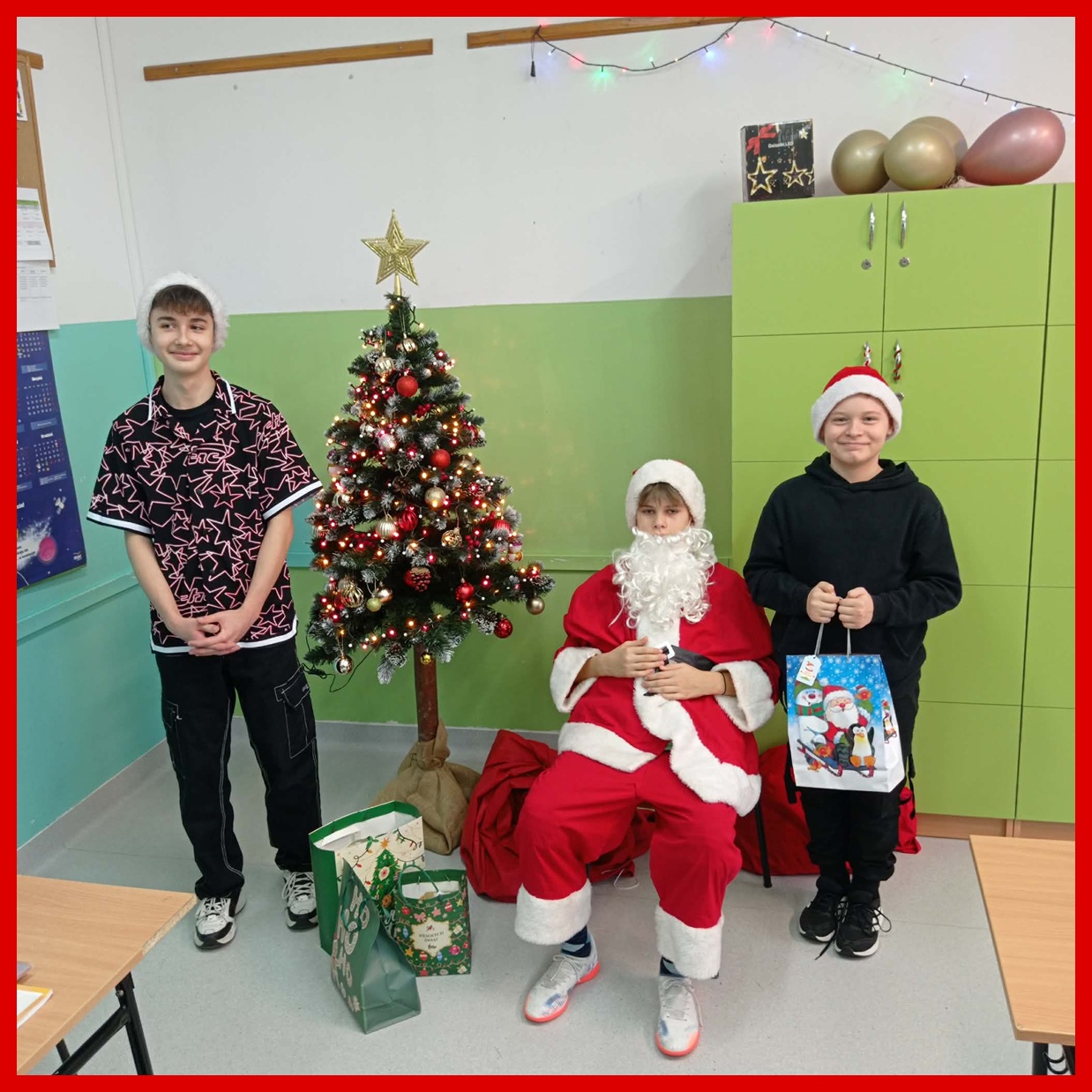 Dnia 5 grudnia 2025 roku naszą szkołę odwiedził Święty Mikołaj z prezentami. Wszyscy witali go z ogromną radością, były zdjęcia i rozmowy. Aby podkreślić świąteczny nastrój Samorząd Uczniowski zachęcił wszystkich do przebrania się w stroje z elementami świątecznymi. Był to bardzo udany dzień.