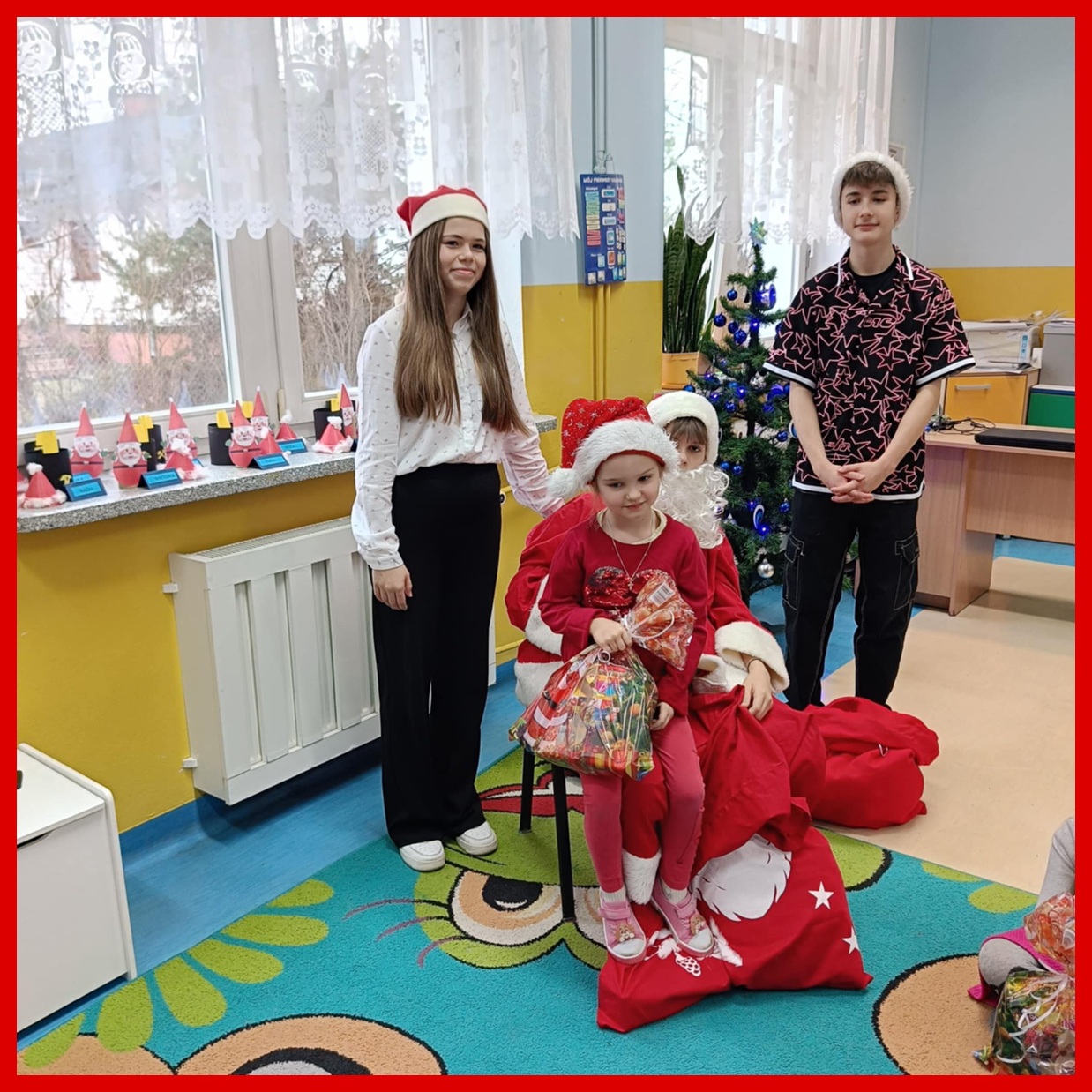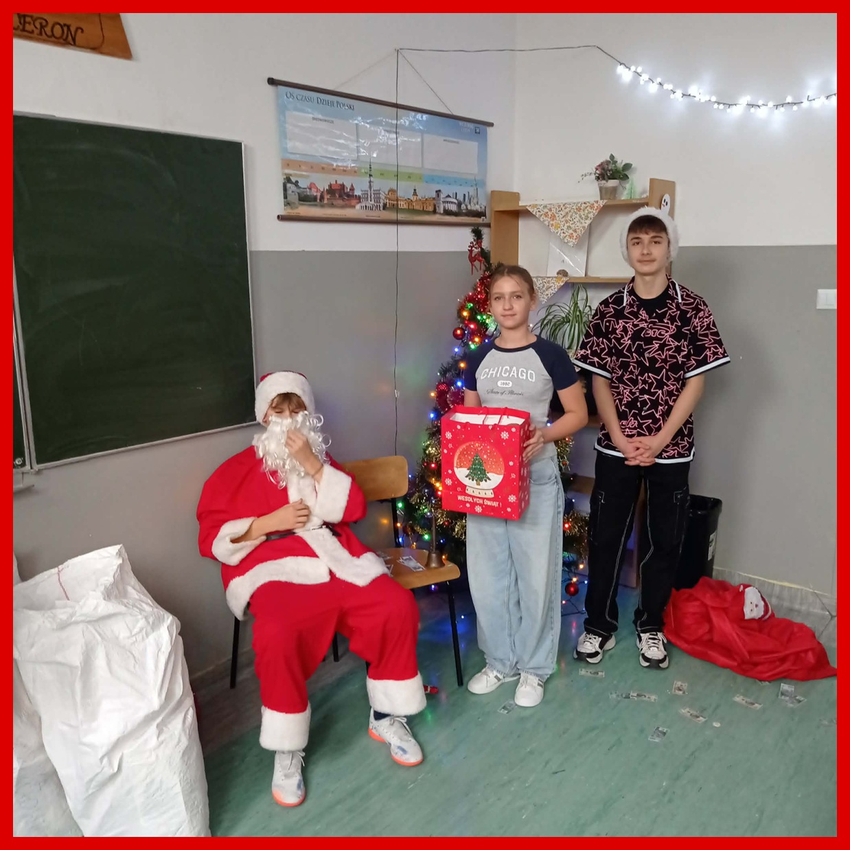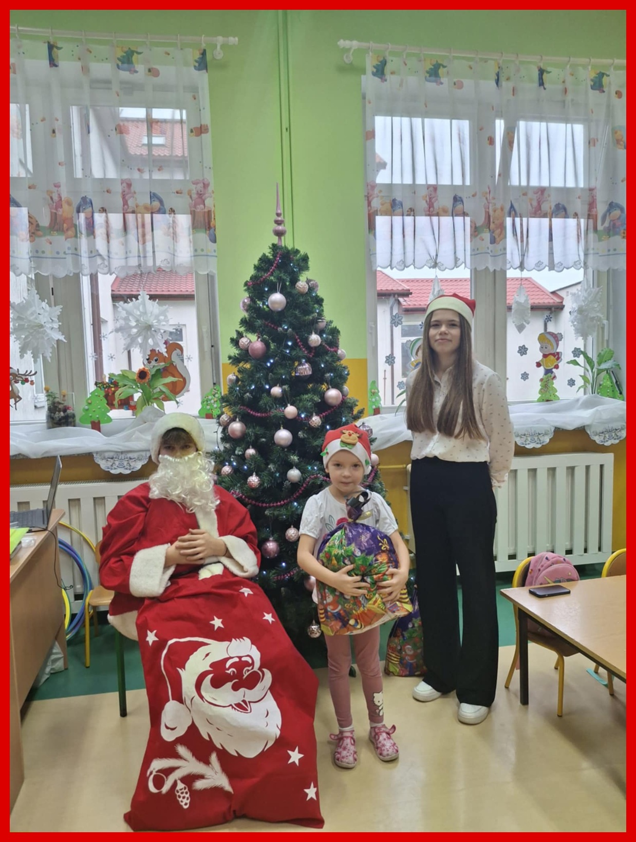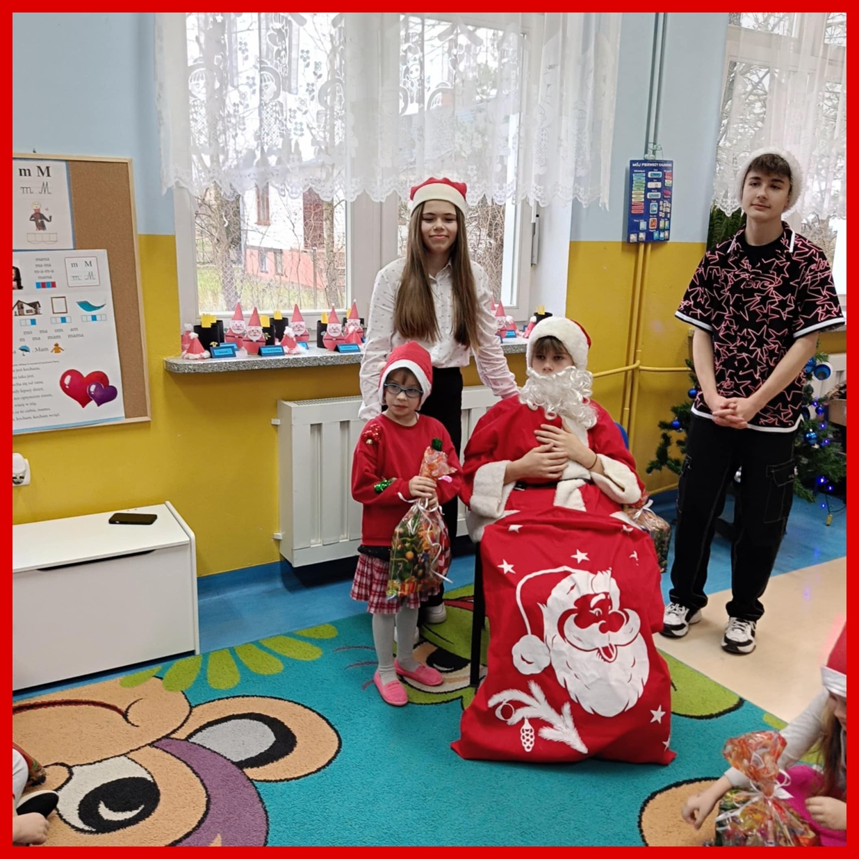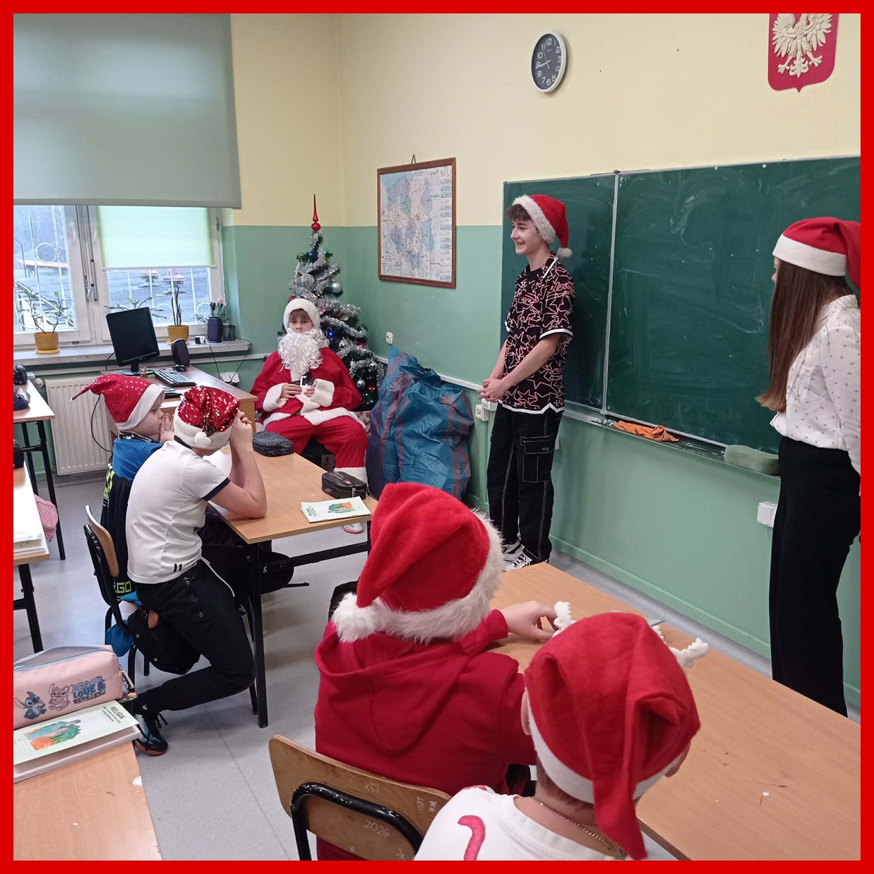 Dnia 5 grudnia 2025 roku naszą szkołę odwiedził Święty Mikołaj z prezentami. Wszyscy witali go z ogromną radością, były zdjęcia i rozmowy. Aby podkreślić świąteczny nastrój Samorząd Uczniowski zachęcił wszystkich do przebrania się w stroje z elementami świątecznymi. Był to bardzo udany dzień.
