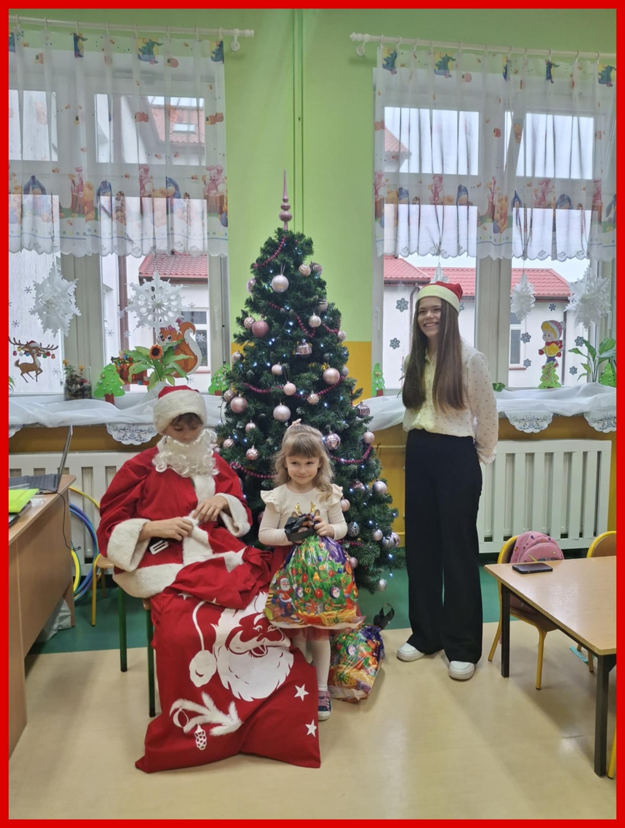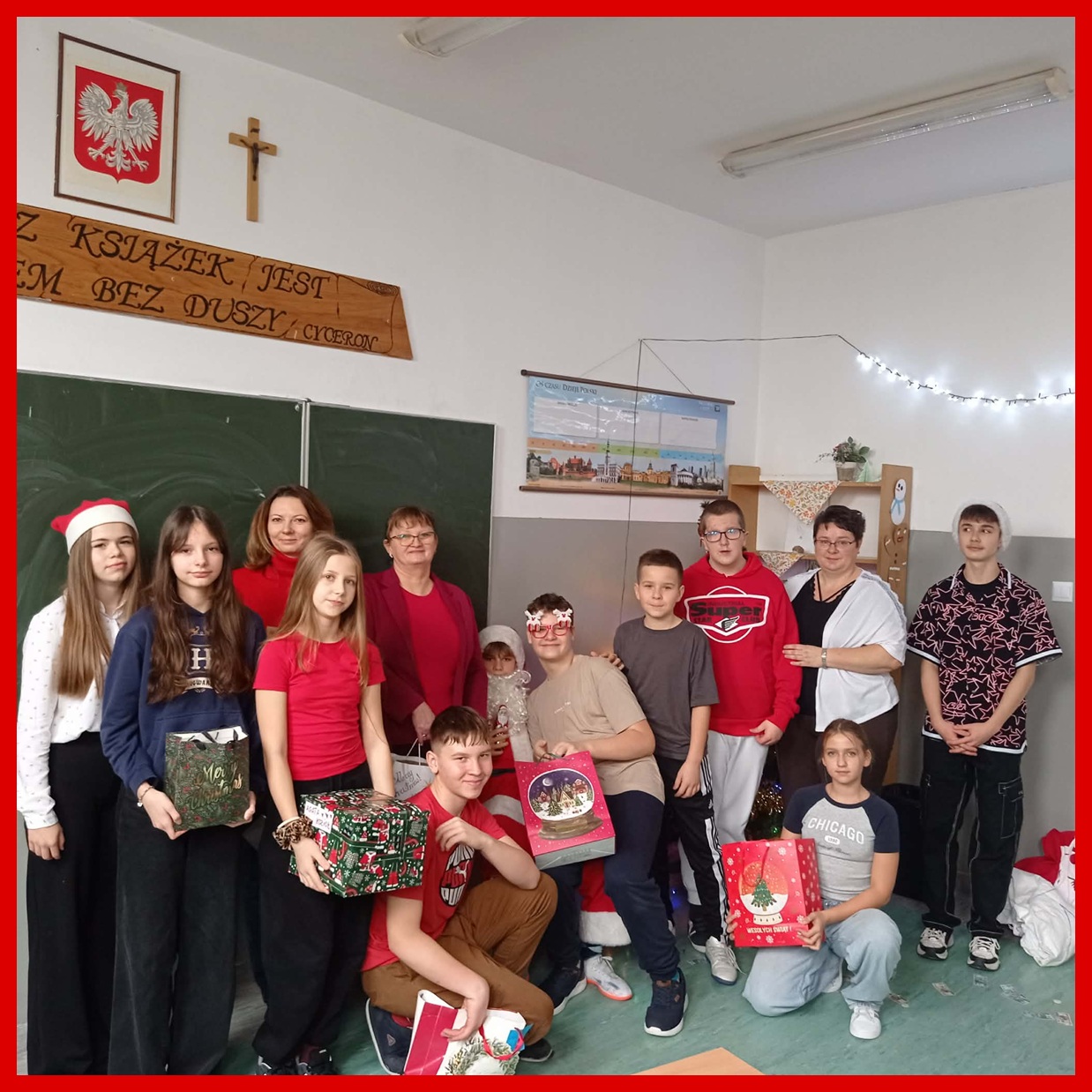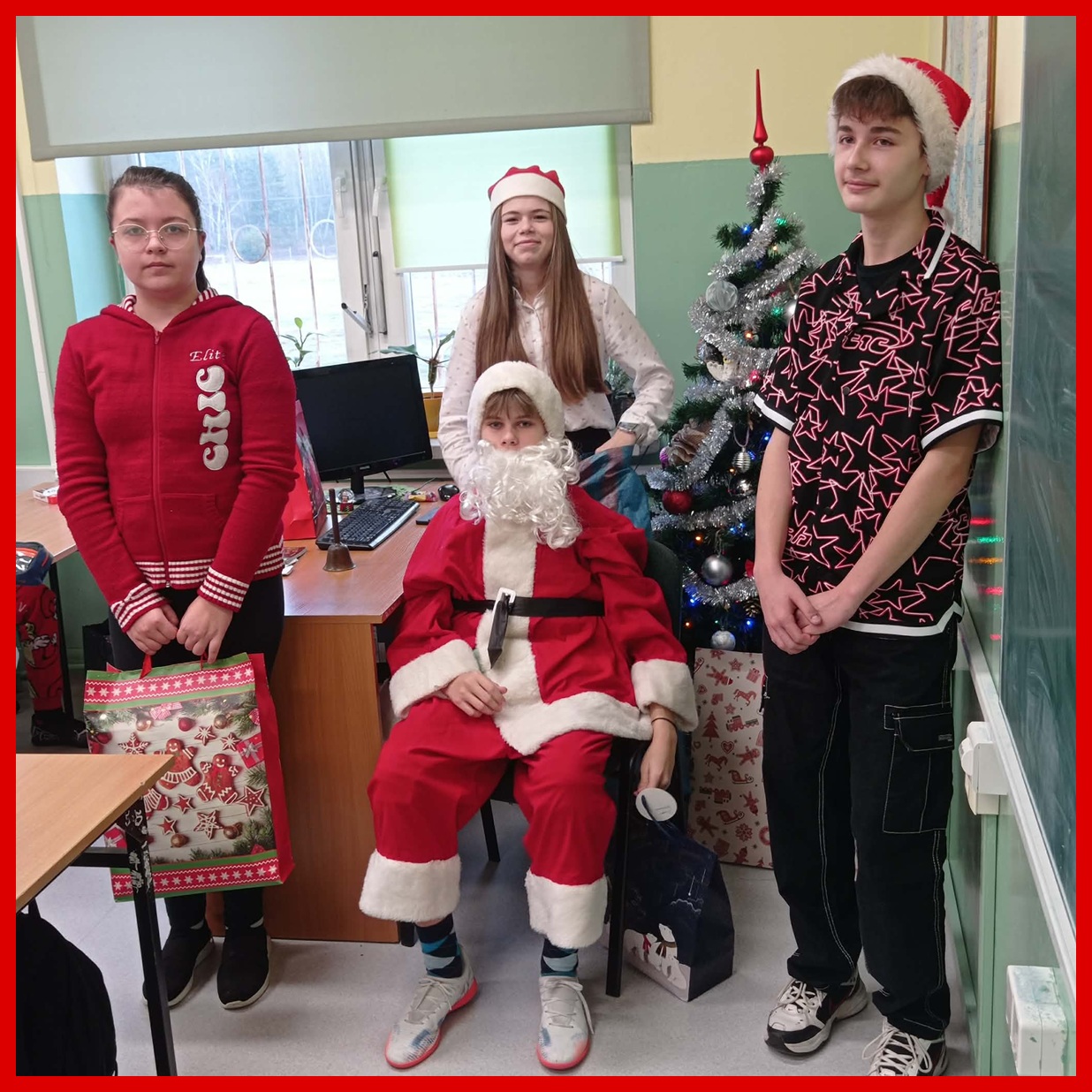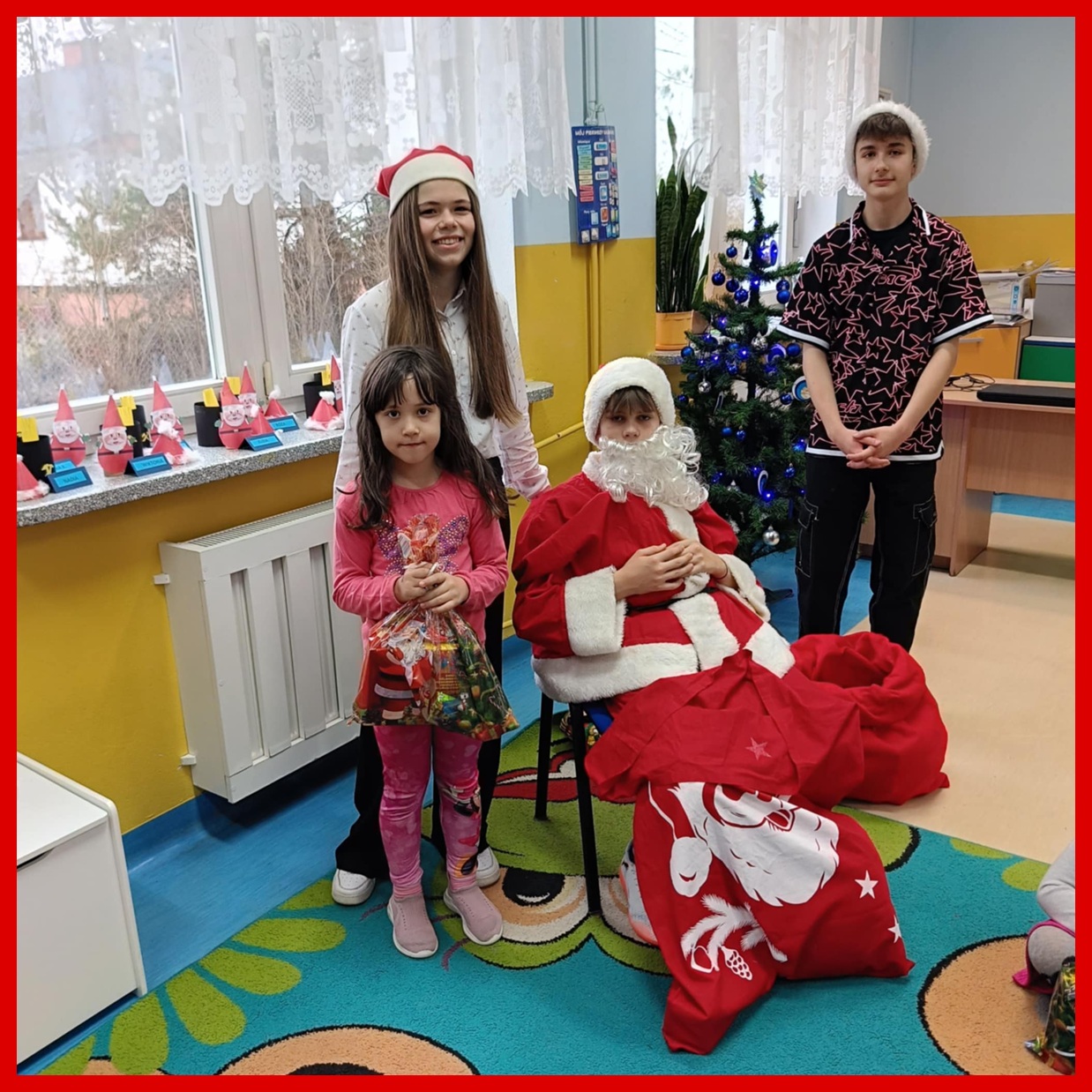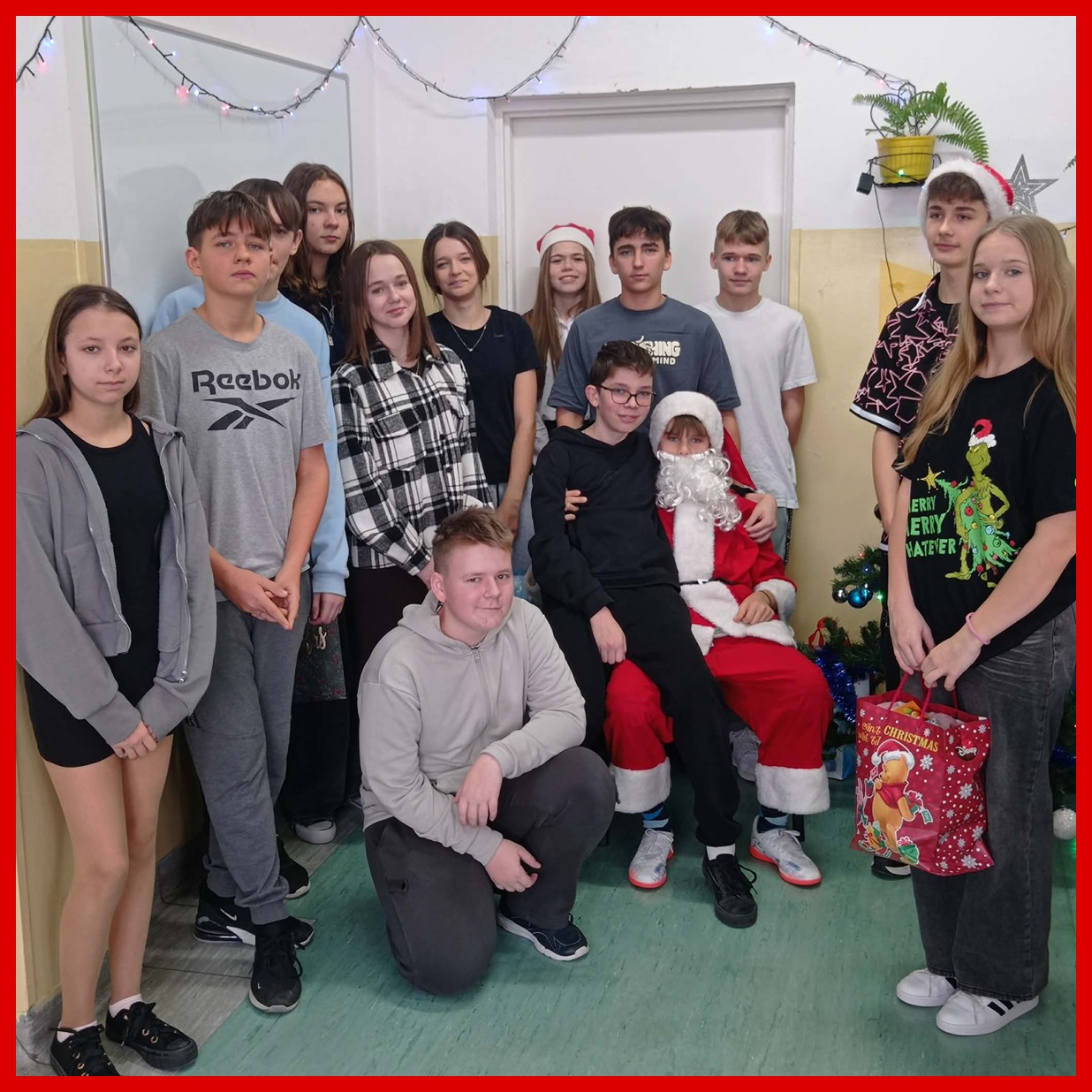 Dnia 5 grudnia 2025 roku naszą szkołę odwiedził Święty Mikołaj z prezentami. Wszyscy witali go z ogromną radością, były zdjęcia i rozmowy. Aby podkreślić świąteczny nastrój Samorząd Uczniowski zachęcił wszystkich do przebrania się w stroje z elementami świątecznymi. Był to bardzo udany dzień.