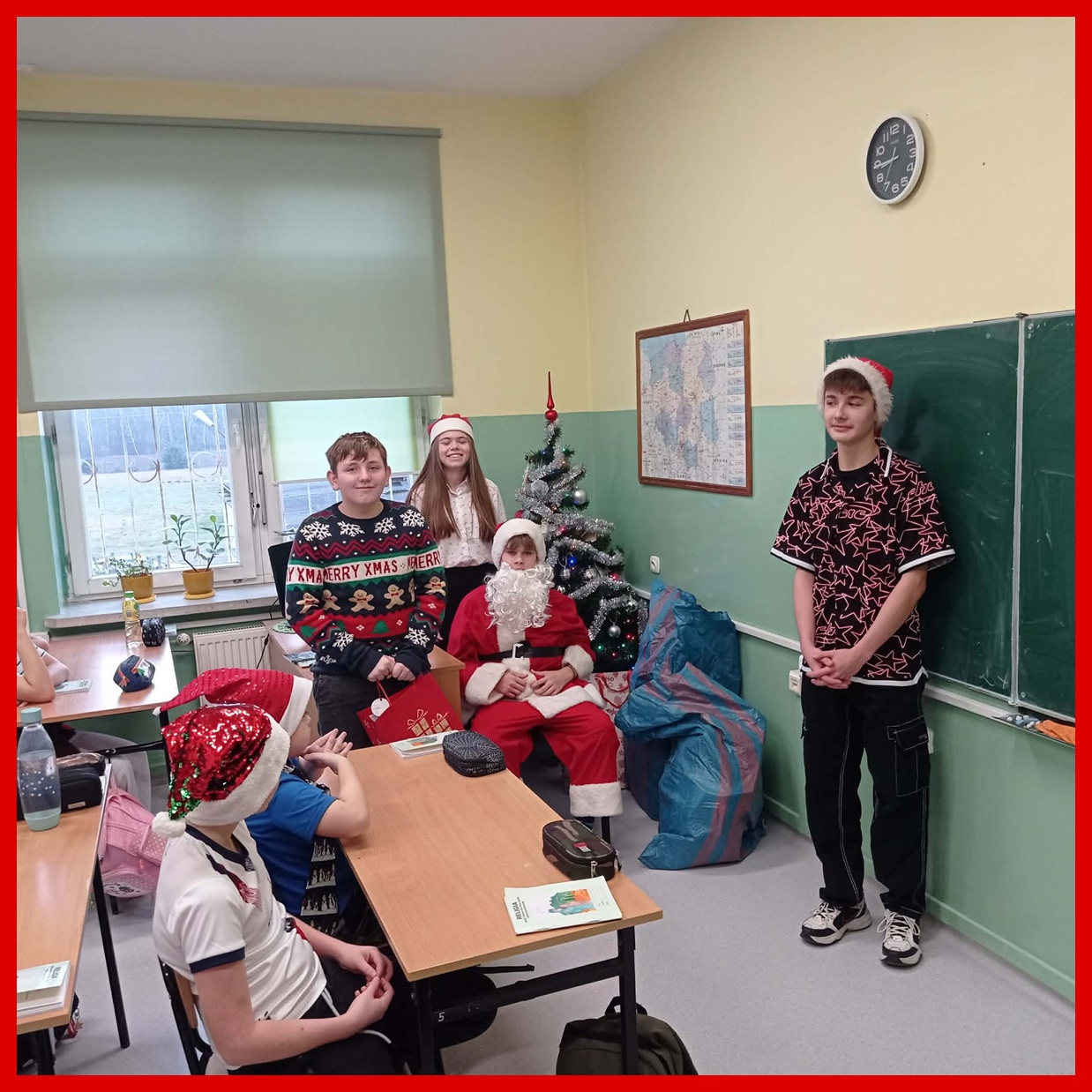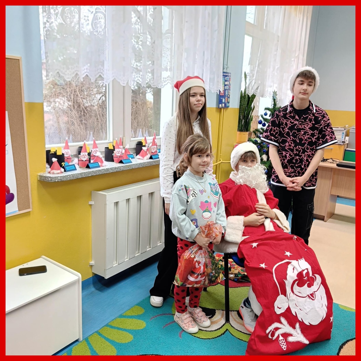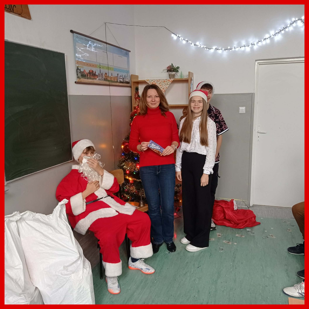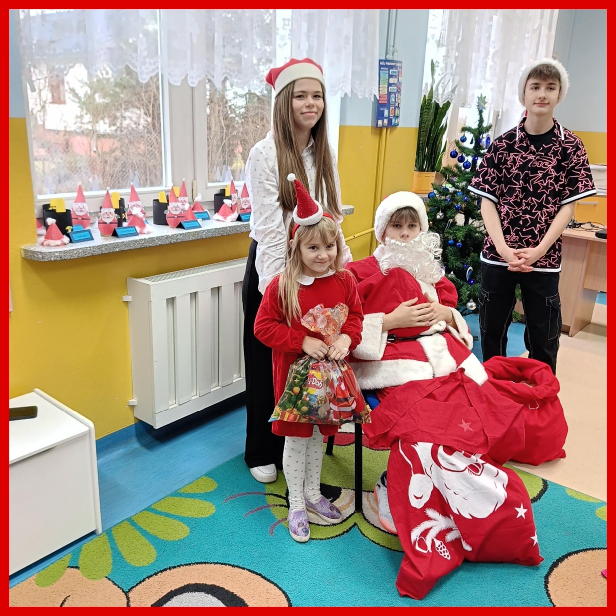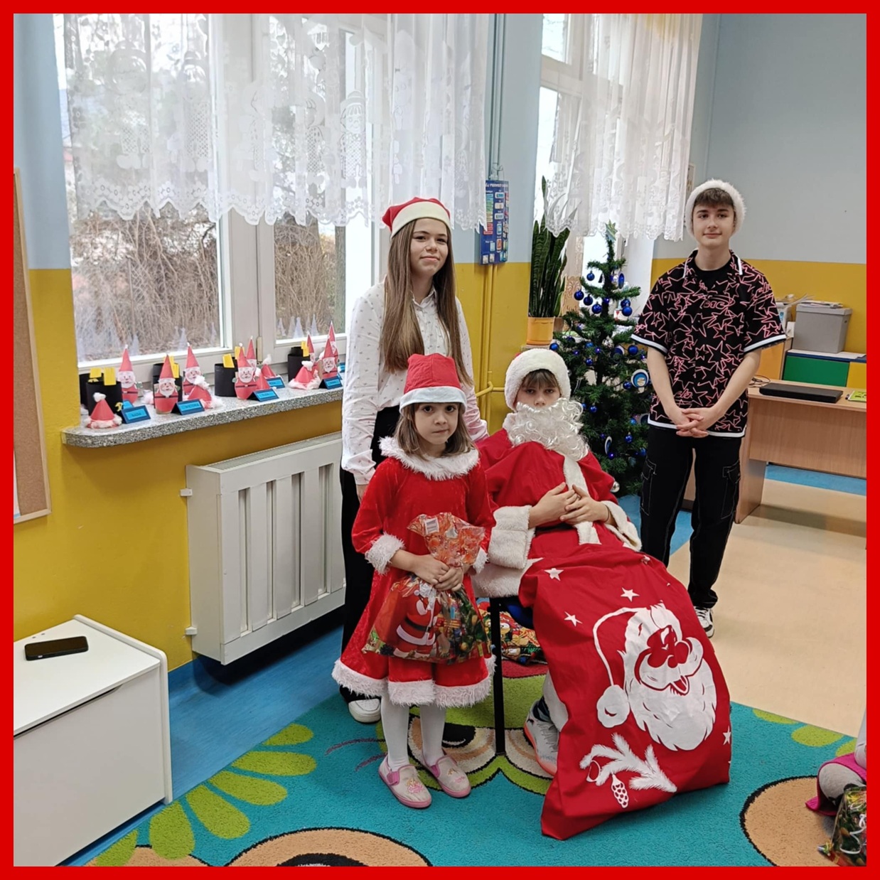 Dnia 5 grudnia 2025 roku naszą szkołę odwiedził Święty Mikołaj z prezentami. Wszyscy witali go z ogromną radością, były zdjęcia i rozmowy. Aby podkreślić świąteczny nastrój Samorząd Uczniowski zachęcił wszystkich do przebrania się w stroje z elementami świątecznymi. Był to bardzo udany dzień.