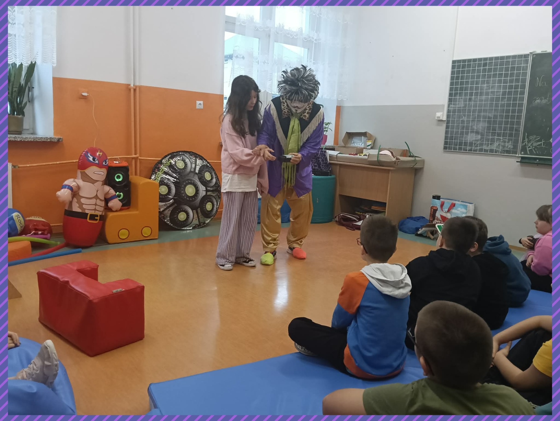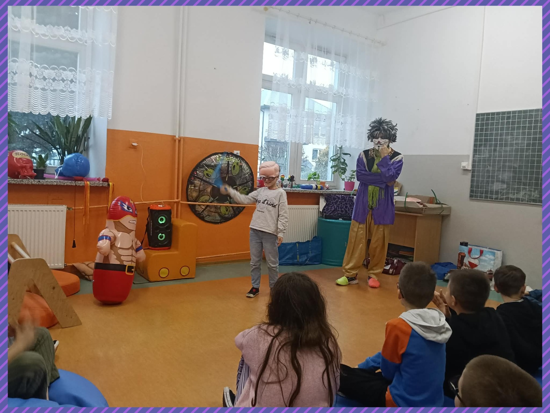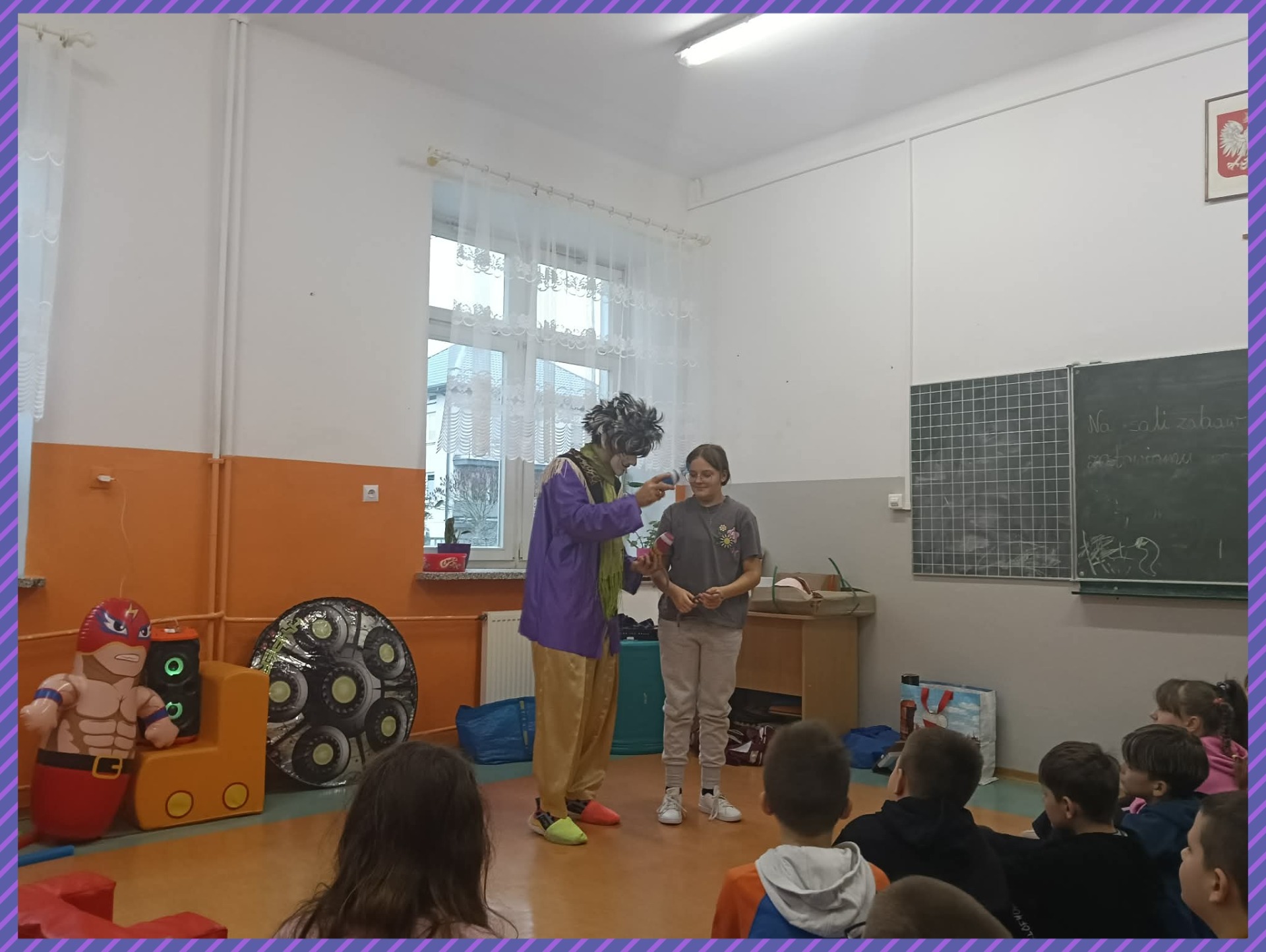 Do naszej szkoły zawitał niezwykły gość – Claun Walduś, który swoim barwnym występem rozbawił zarówno przedszkolaków, jak i uczniów klas I – III. Dzieci z ogromnym zainteresowaniem śledziły jego zabawne sztuczki, pokazy cyrkowe oraz humorystyczne scenki. Nie zabrakło wspólnej zabawy, śmiechu i spontanicznych reakcji, które stworzyły wyjątkową, radosną atmosferę. Występ Clauna Waldusia dostarczył najmłodszym mnóstwo pozytywnych emocji i na długo pozostanie w ich pamięci. Dziękujemy za pełne uśmiechu spotkanie!