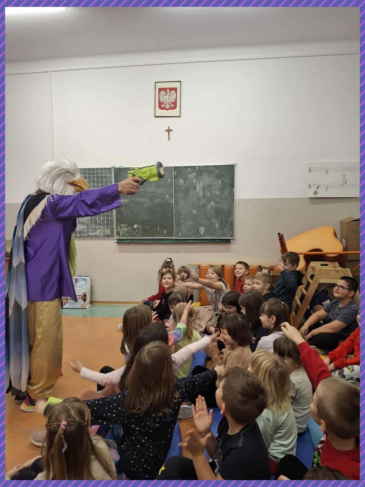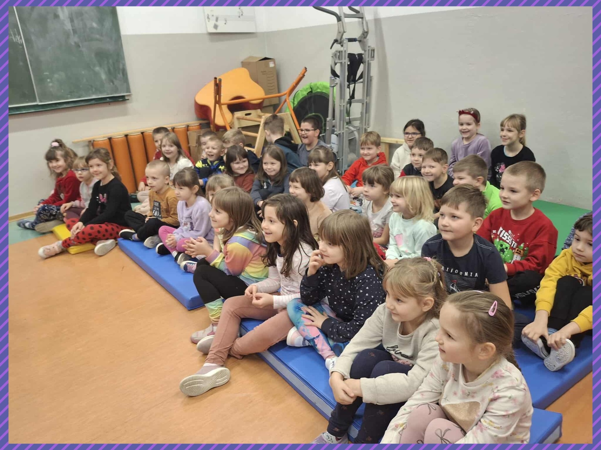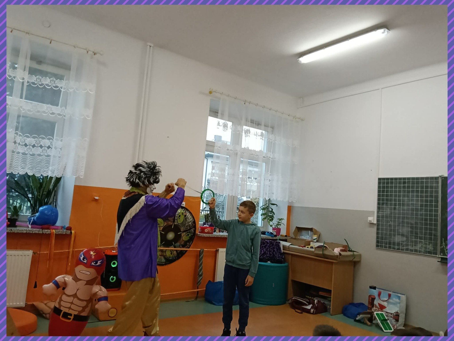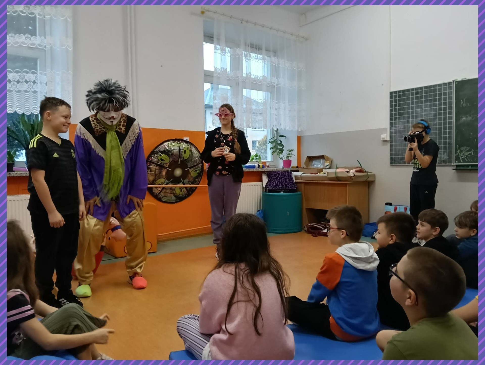 Do naszej szkoły zawitał niezwykły gość – Claun Walduś, który swoim barwnym występem rozbawił zarówno przedszkolaków, jak i uczniów klas I – III. Dzieci z ogromnym zainteresowaniem śledziły jego zabawne sztuczki, pokazy cyrkowe oraz humorystyczne scenki. Nie zabrakło wspólnej zabawy, śmiechu i spontanicznych reakcji, które stworzyły wyjątkową, radosną atmosferę. Występ Clauna Waldusia dostarczył najmłodszym mnóstwo pozytywnych emocji i na długo pozostanie w ich pamięci. Dziękujemy za pełne uśmiechu spotkanie!