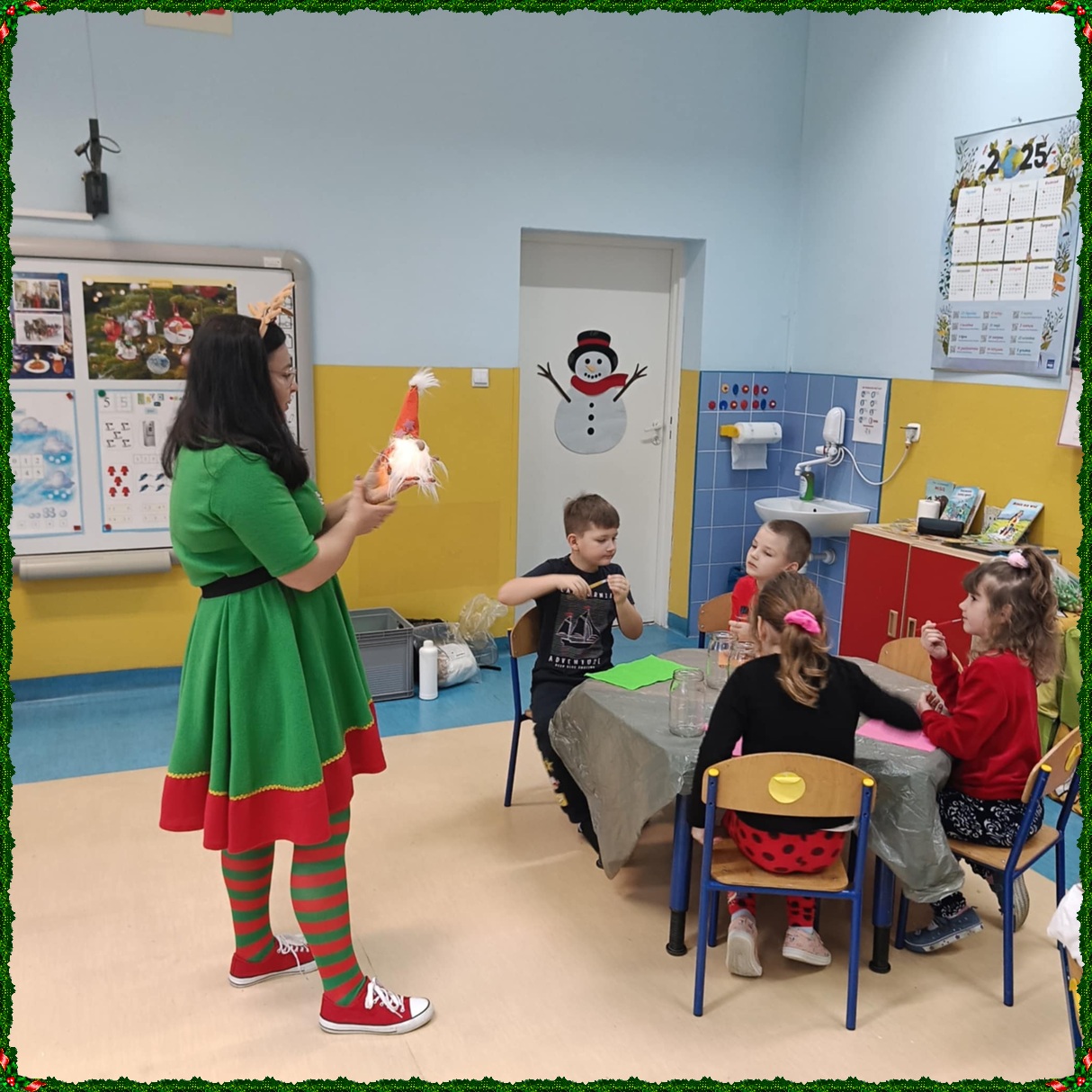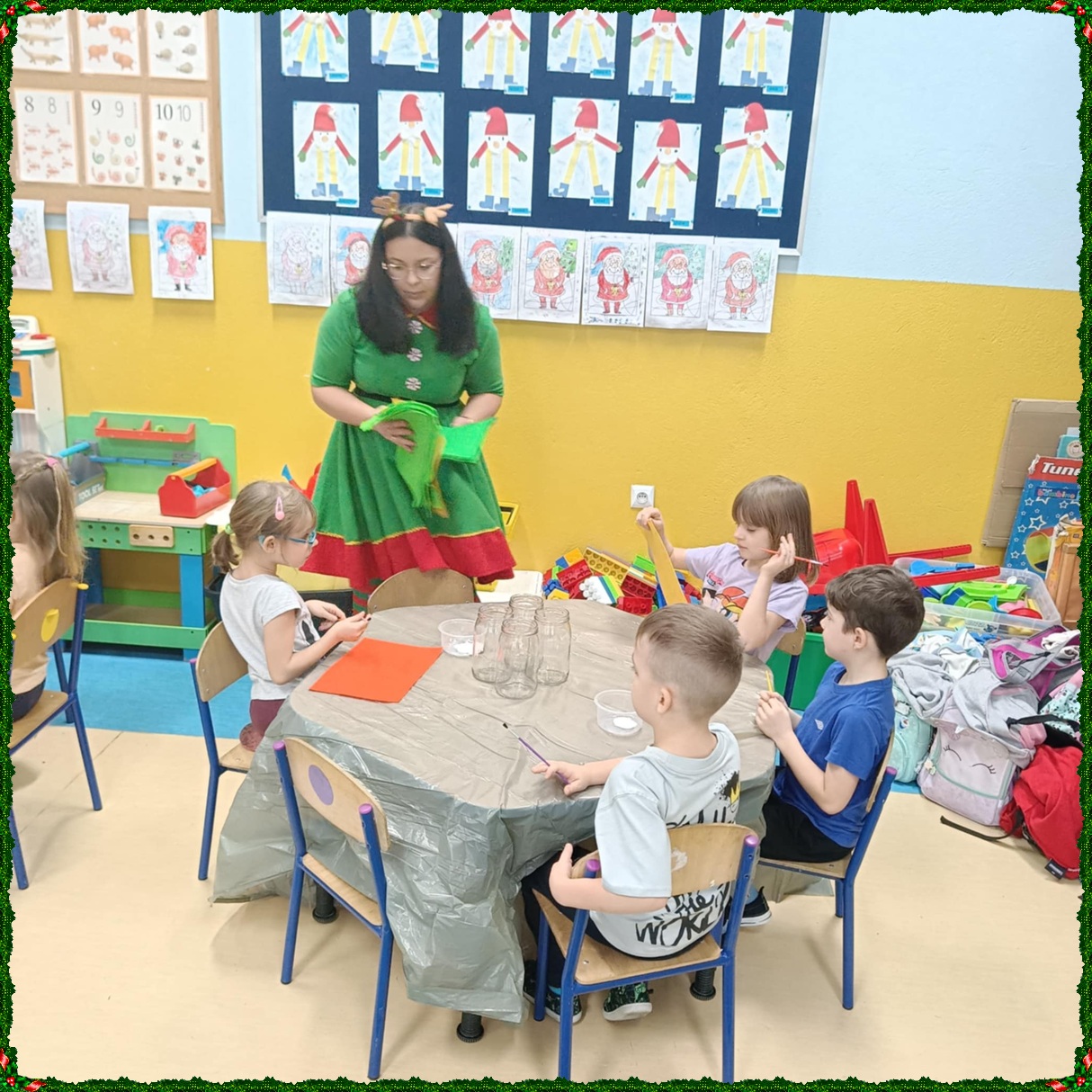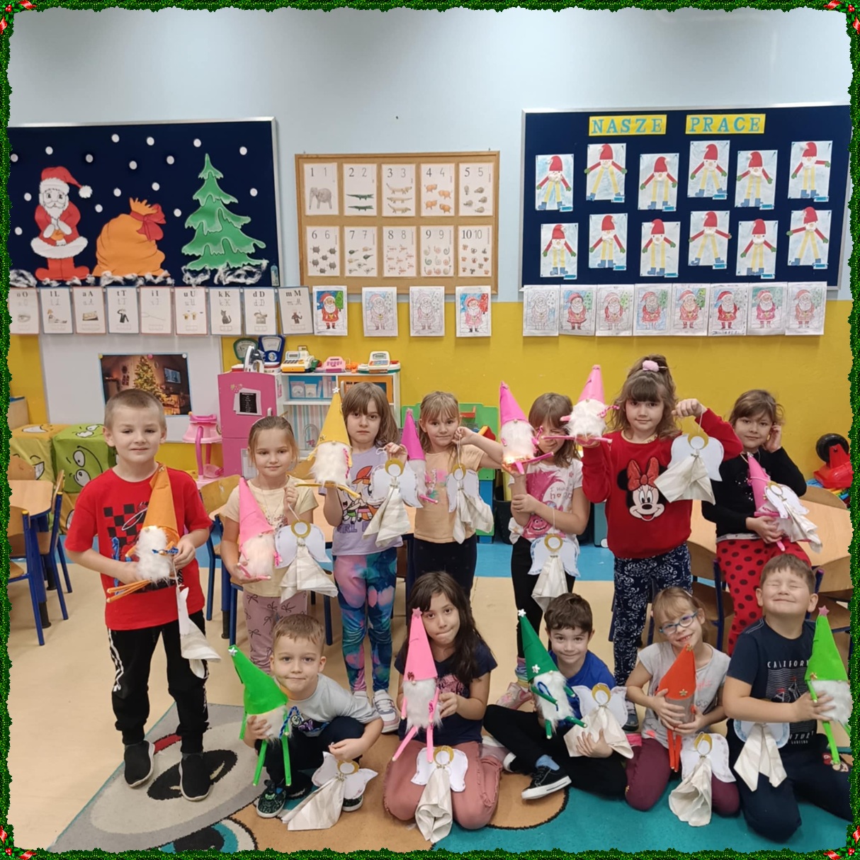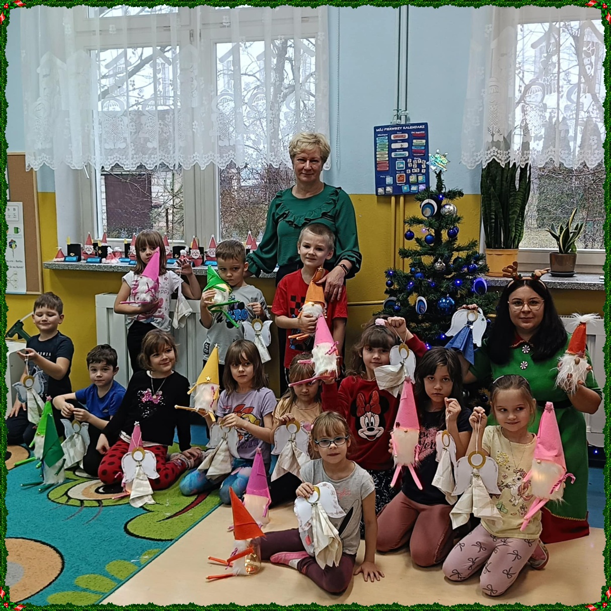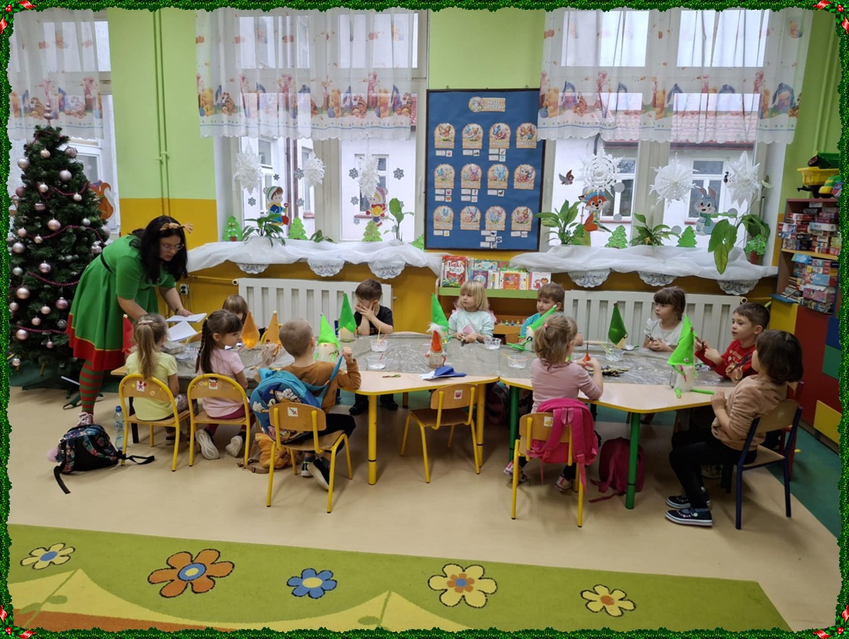 W naszym przedszkolu na dobre zagościł świąteczny nastrój. Dzieci z punktu i oddziału przedszkolnego uczestniczyły w wyjątkowych warsztatach bożonarodzeniowych prowadzonych przez Panią Dominikę. Z ogromnym entuzjazmem tworzyły własne ozdoby – świecące skrzaty oraz papierowe aniołki. Wspólne tworzenie dekoracji przyniosło wszystkim dużo radości, zabawy i twórczej energii. To były naprawdę niezapomniane chwile. Serdecznie dziękujemy Pani Dominice za inspirujące zajęcia i wprowadzenie nas w magiczną atmosferę świąt.
