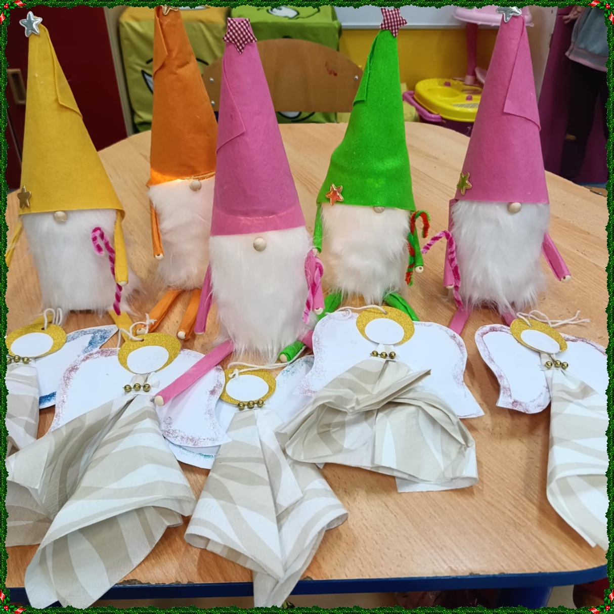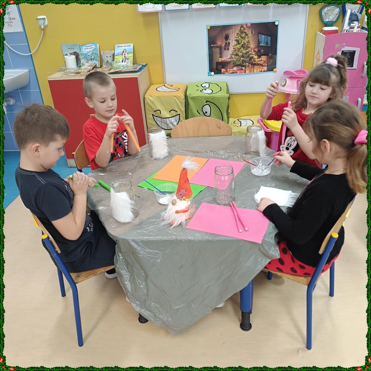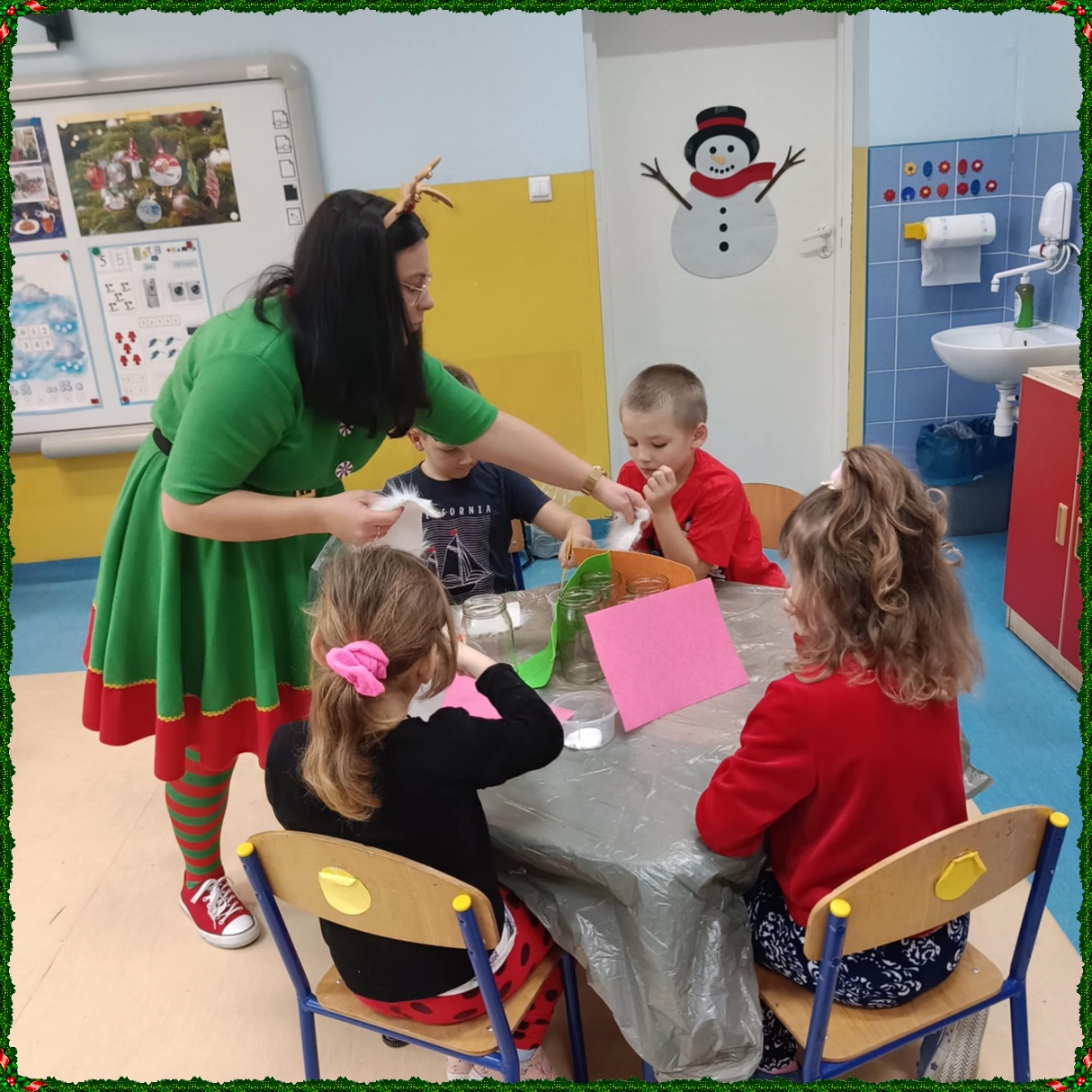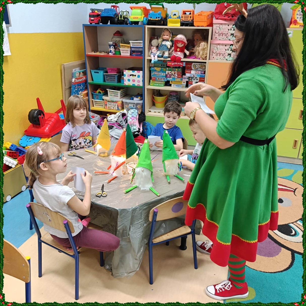 W naszym przedszkolu na dobre zagościł świąteczny nastrój. Dzieci z punktu i oddziału przedszkolnego uczestniczyły w wyjątkowych warsztatach bożonarodzeniowych prowadzonych przez Panią Dominikę. Z ogromnym entuzjazmem tworzyły własne ozdoby – świecące skrzaty oraz papierowe aniołki. Wspólne tworzenie dekoracji przyniosło wszystkim dużo radości, zabawy i twórczej energii. To były naprawdę niezapomniane chwile. Serdecznie dziękujemy Pani Dominice za inspirujące zajęcia i wprowadzenie nas w magiczną atmosferę świąt.