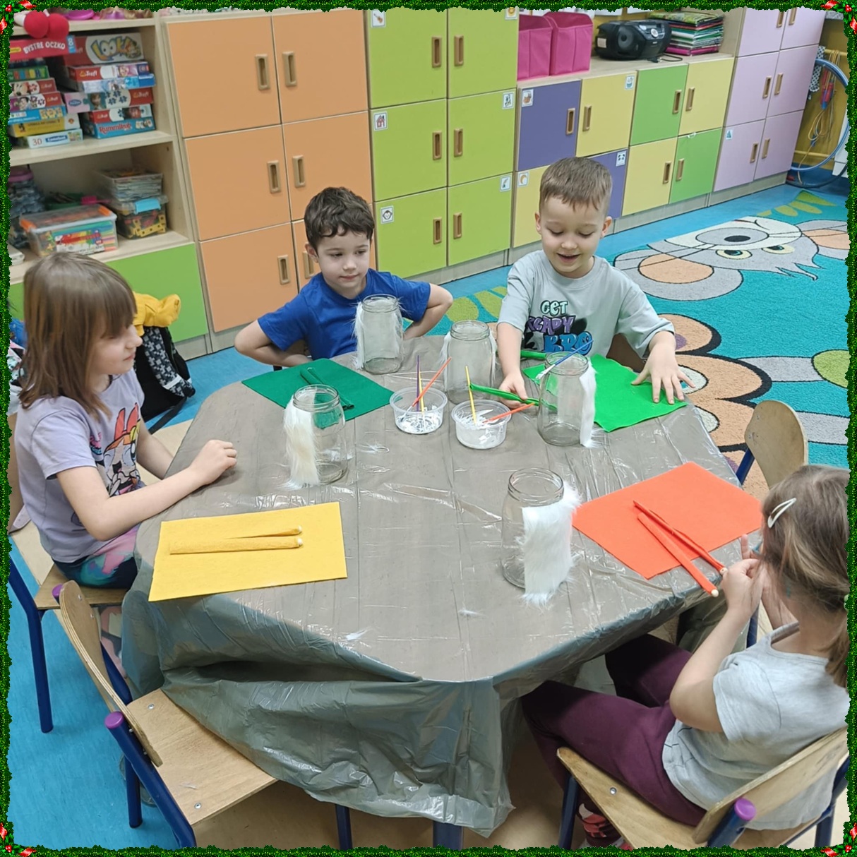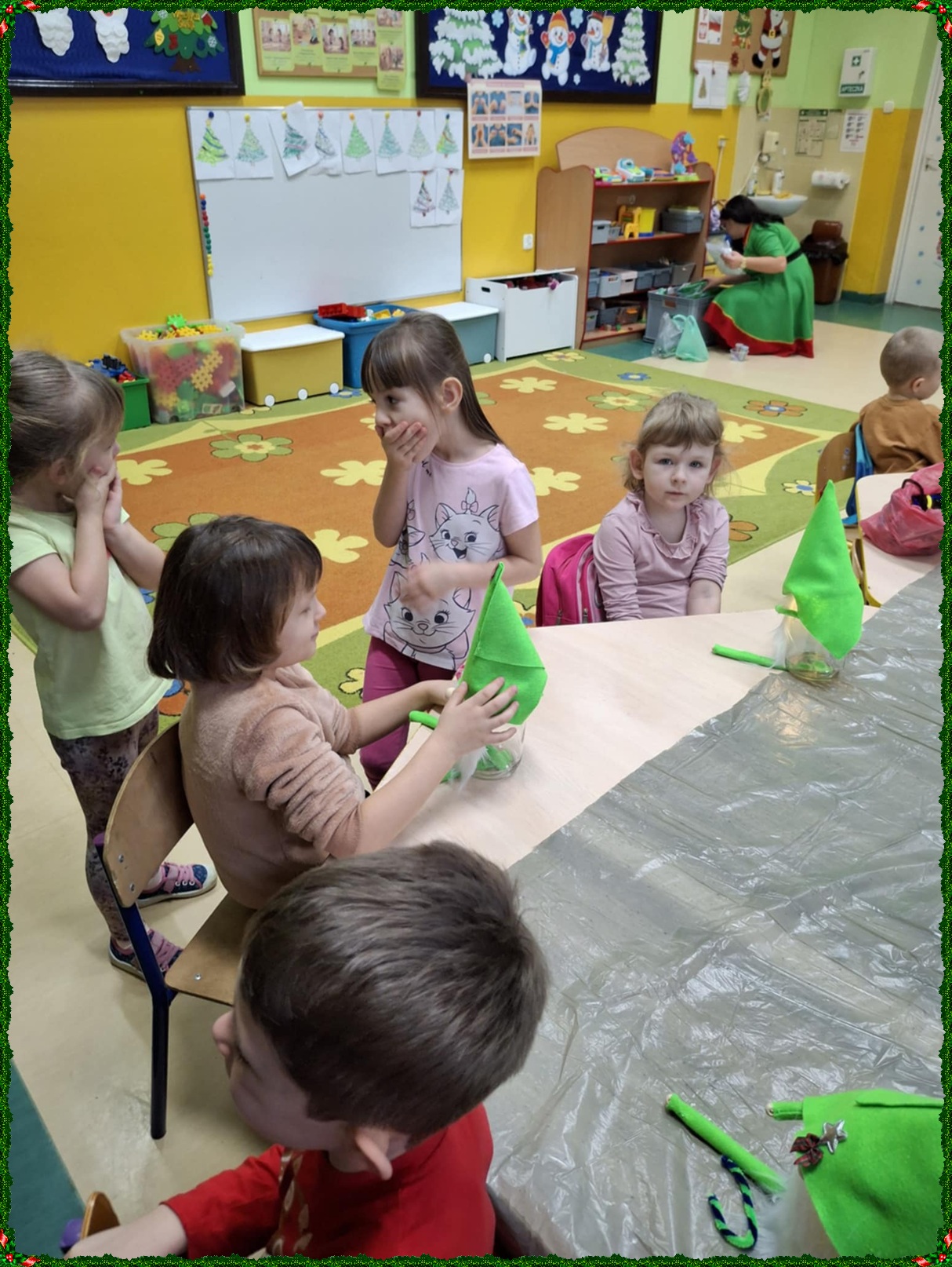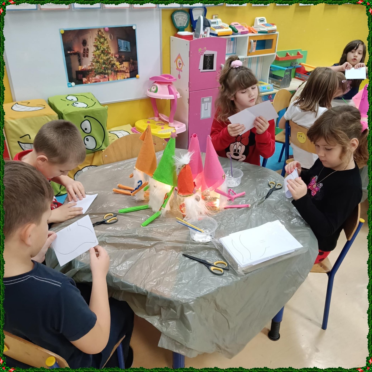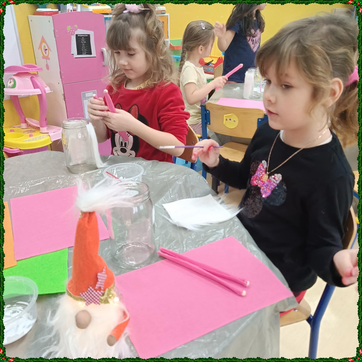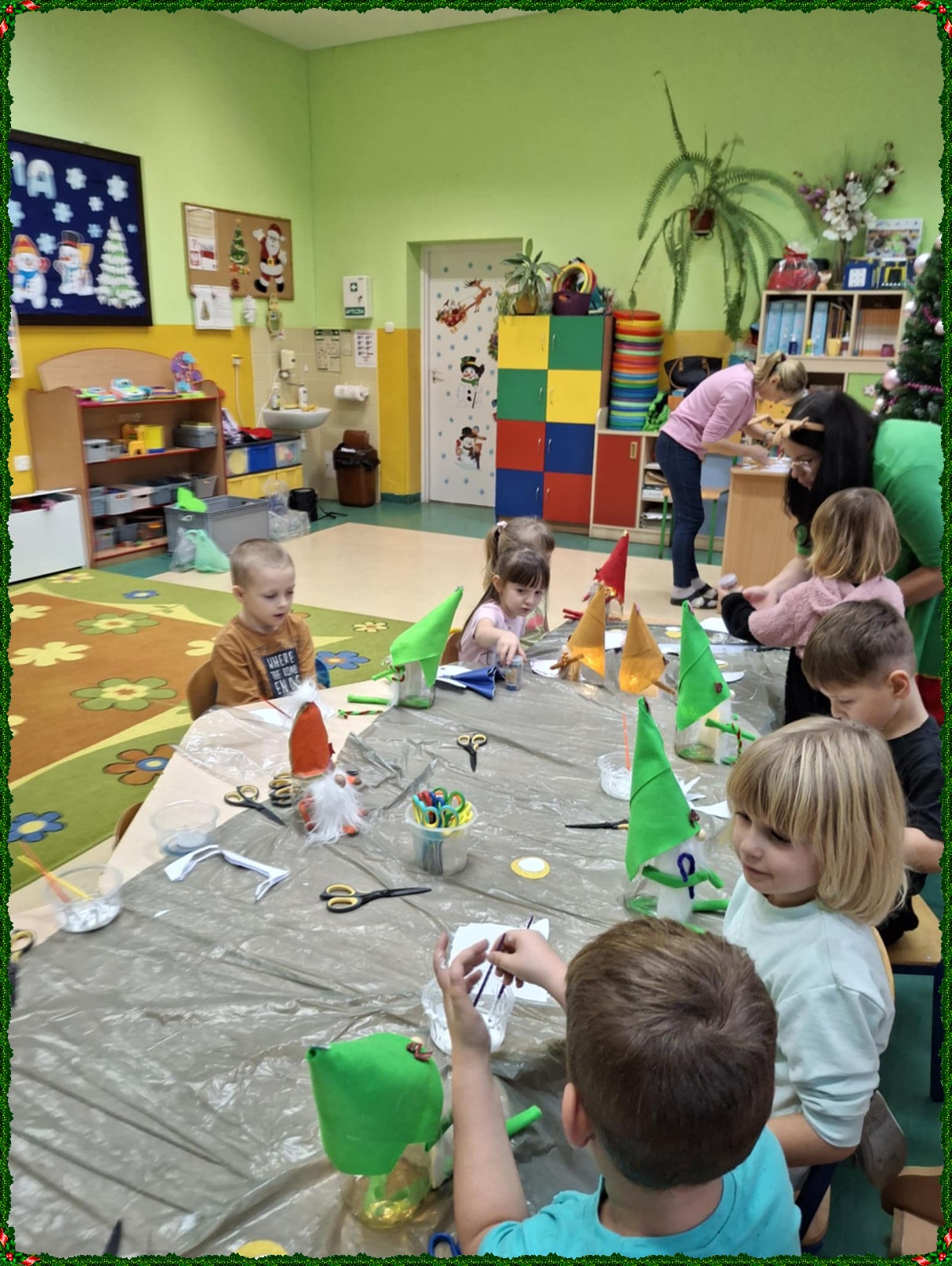 W naszym przedszkolu na dobre zagościł świąteczny nastrój. Dzieci z punktu i oddziału przedszkolnego uczestniczyły w wyjątkowych warsztatach bożonarodzeniowych prowadzonych przez Panią Dominikę. Z ogromnym entuzjazmem tworzyły własne ozdoby – świecące skrzaty oraz papierowe aniołki. Wspólne tworzenie dekoracji przyniosło wszystkim dużo radości, zabawy i twórczej energii. To były naprawdę niezapomniane chwile. Serdecznie dziękujemy Pani Dominice za inspirujące zajęcia i wprowadzenie nas w magiczną atmosferę świąt.