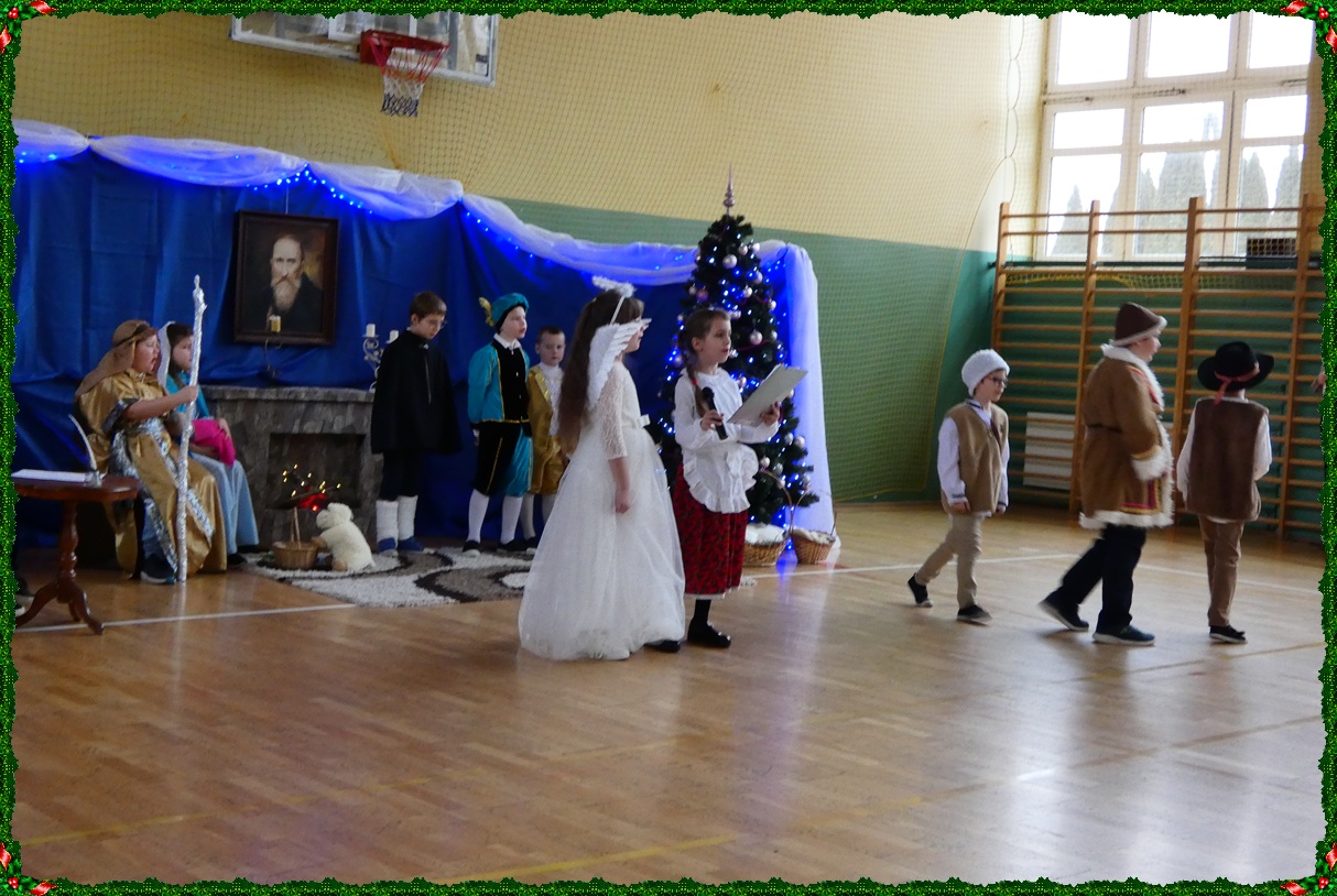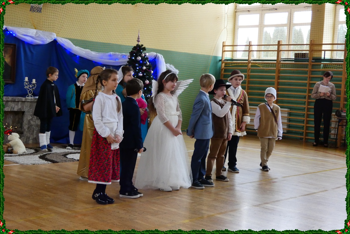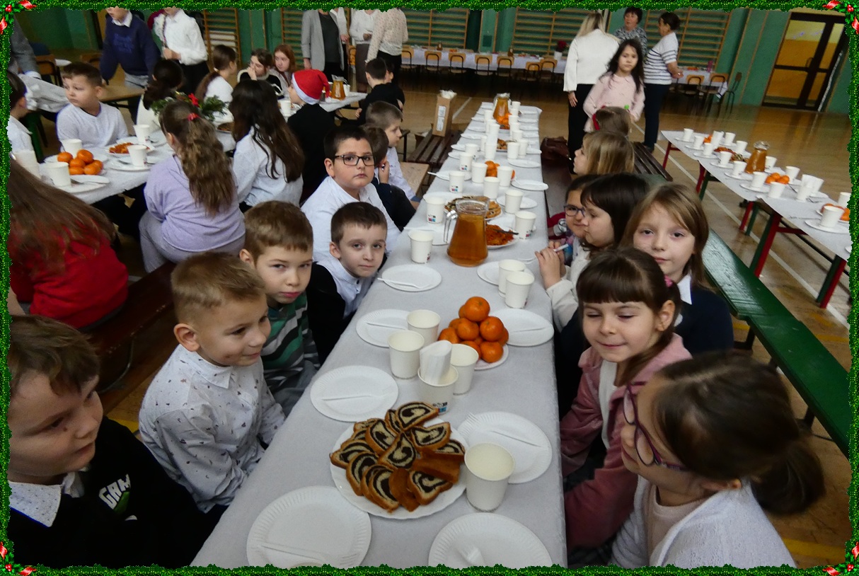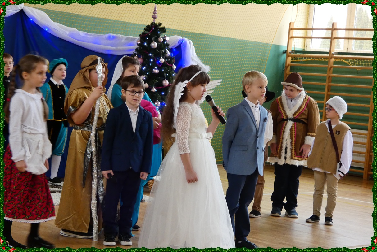 Dnia 19 grudnia w naszej szkole odbyła się wigilia szkolna, która wprowadziła całą społeczność szkolną w świąteczny nastrój. Uroczystość rozpoczęły jasełka w wykonaniu uczniów klasy II, którzy w piękny i wzruszający sposób przedstawili historię Bożego Narodzenia. Następnie uczniowie klasy VIII zaprezentowali wspólne śpiewanie kolęd, które spotkało się z ciepłym przyjęciem zgromadzonych. Podczas spotkania pani dyrektor złożyła wszystkim uczniom, nauczycielom oraz pracownikom szkoły serdeczne życzenia świąteczne. Ksiądz również skierował do zebranych słowa pełne ciepła, życzliwości i bożonarodzeniowej radości. Uroczystość przebiegła w miłej, rodzinnej atmosferze i była pięknym akcentem kończącym okres przedświąteczny.