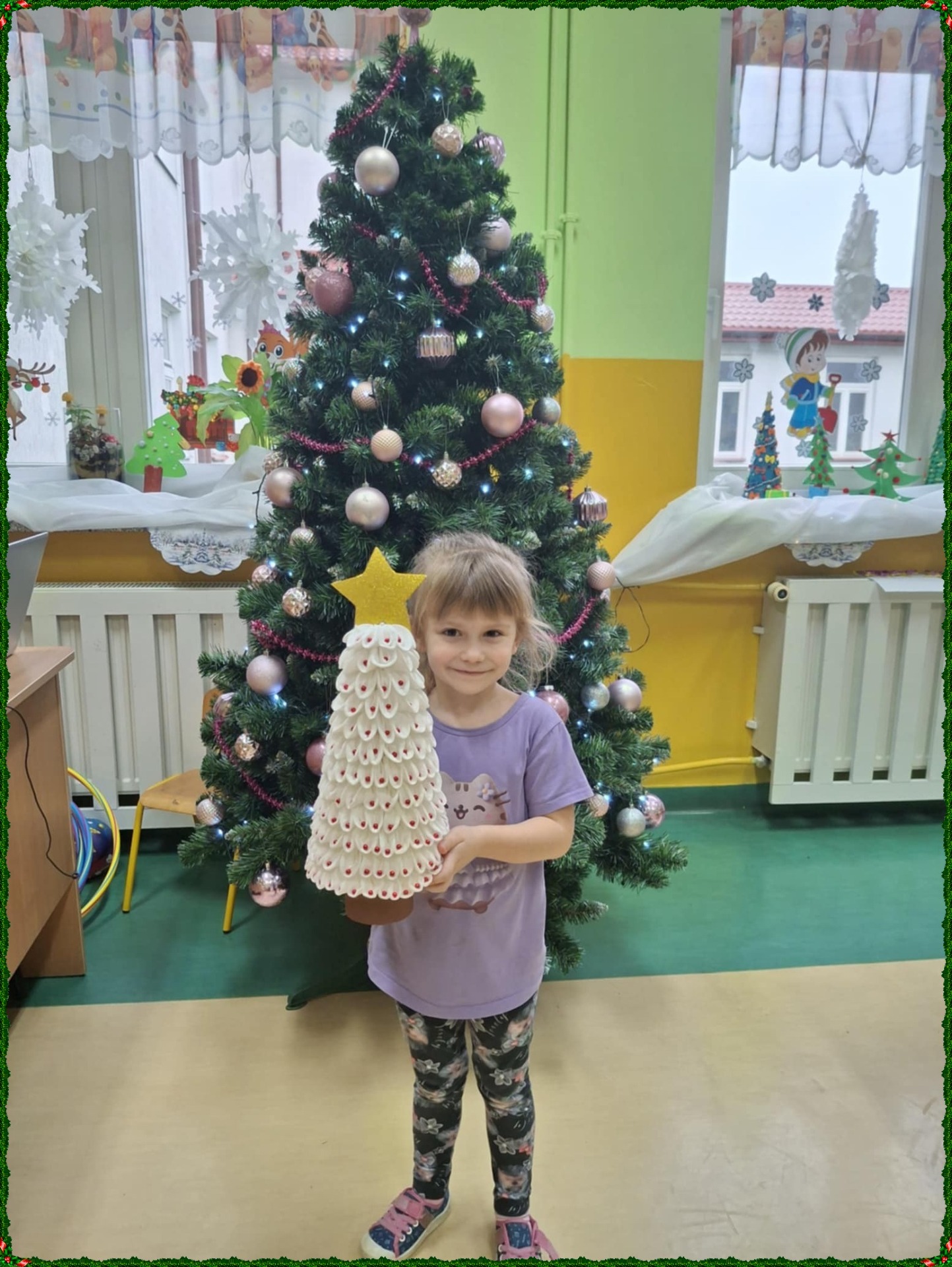 W okresie przedświątecznym w naszym przedszkolu odbył się Konkurs na Choinkę Przestrzenną. Wzięło w nim udział dziewięcioro dzieci, każdy z uczestników został obdarowany upominkiem. Komisja w składzie Pani Dyrektor Aneta Kwietniewska, Pani Anna Olejnik i Pani Alicja Lewczuk wytypowały trzy pierwsze miejsca i trzy wyróżnienia: